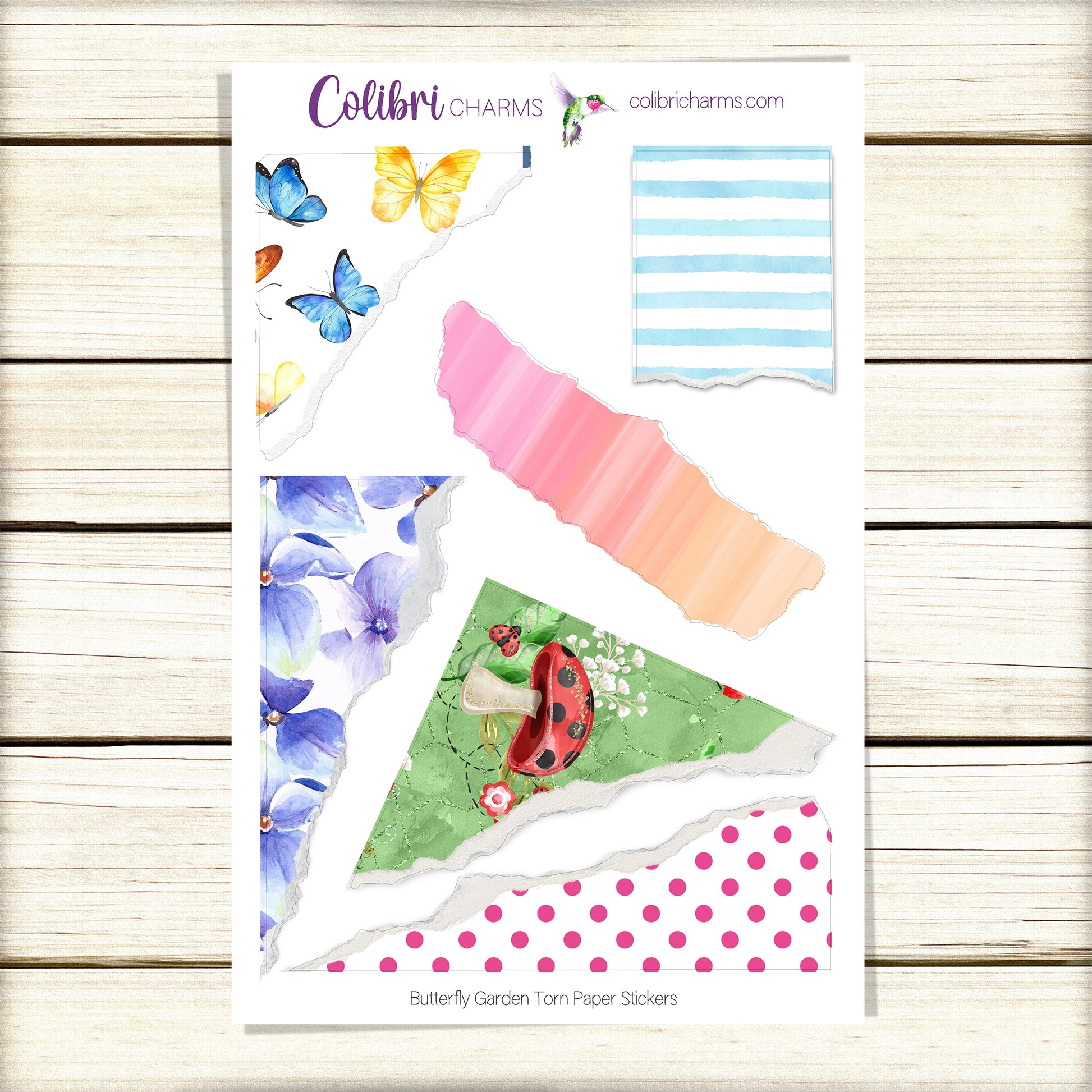 Butterfly Garden Torn Paper Stickers | Spring Deco Planner Stickers | Distressed Ripped Paper