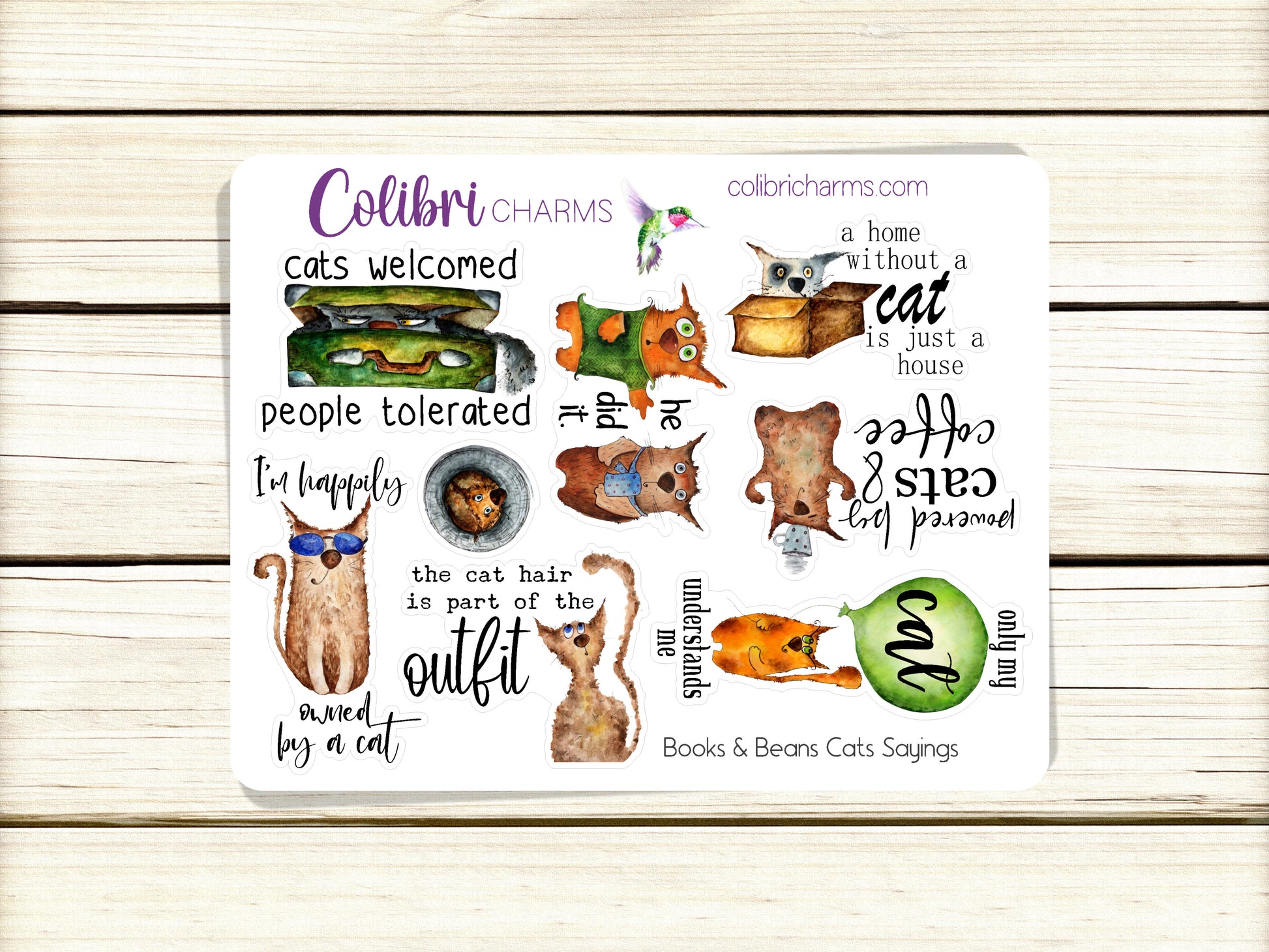 Cat Lovers Planner Stickers: Funny Kitties, Furbabies -- Books & Beans Planner Stickers