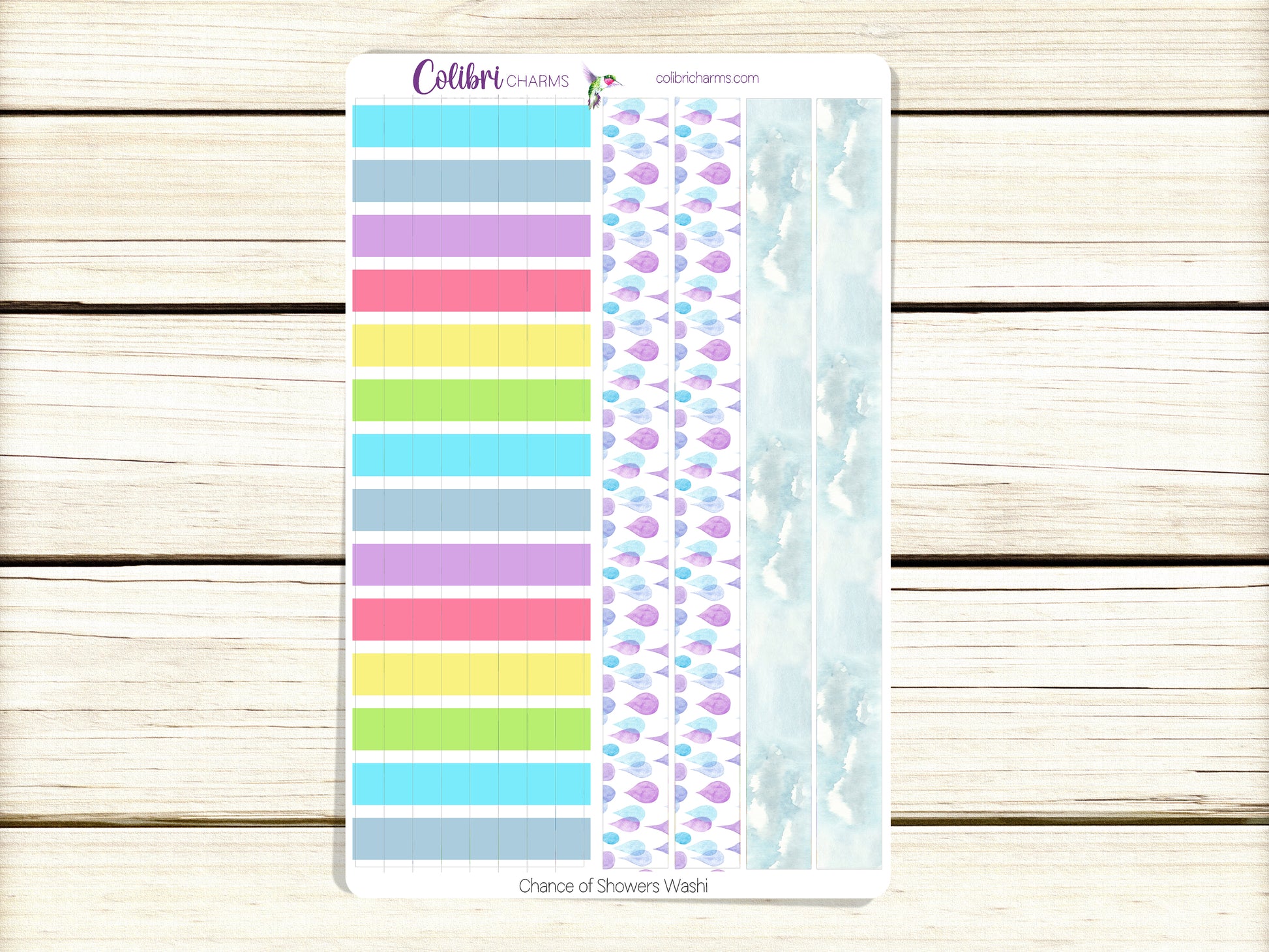 Chance of Showers Washi Strip Stickers | Weather Stickers | Spring Showers Planner Stickers | Seasonal Planner Stickers