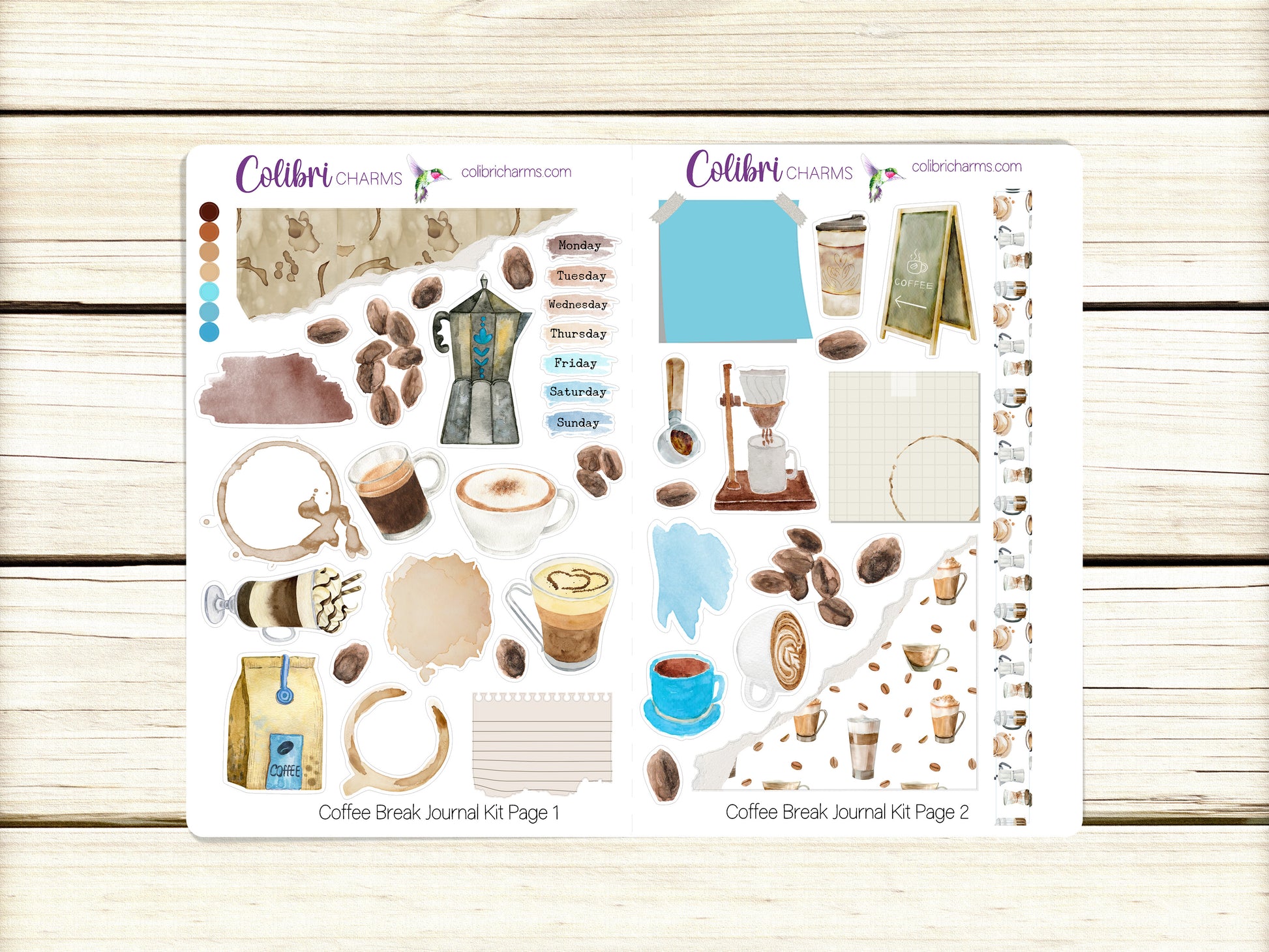 Coffee Break Journal Kit, Planner Stickers, Caffeine Lover Journaling, Coffee Bujo Kit, Seasonal Planner Stickers