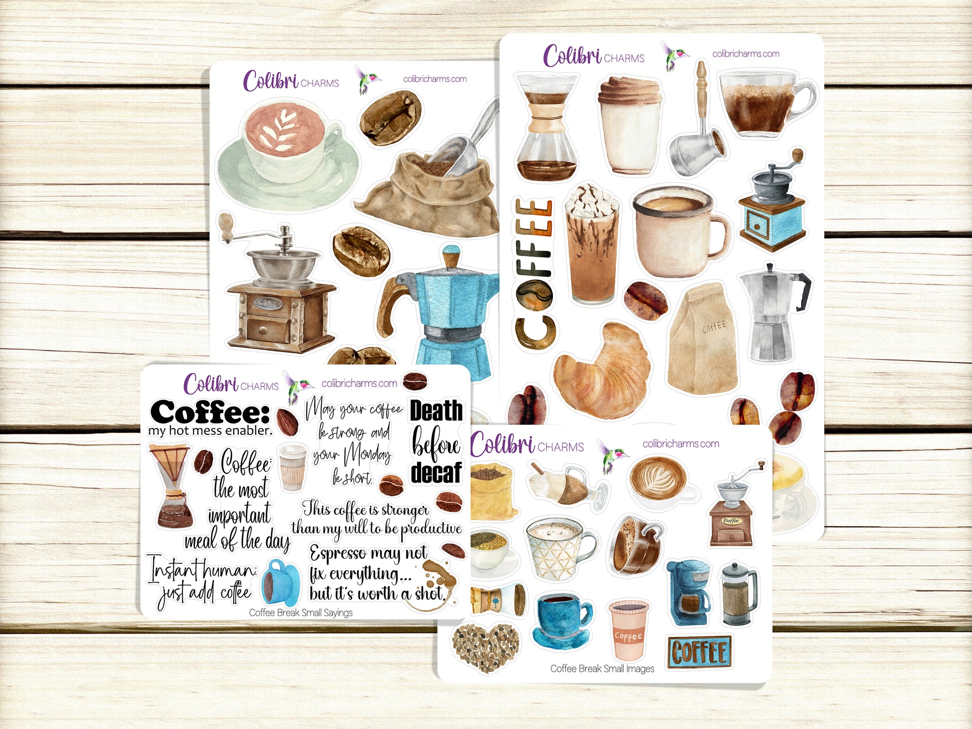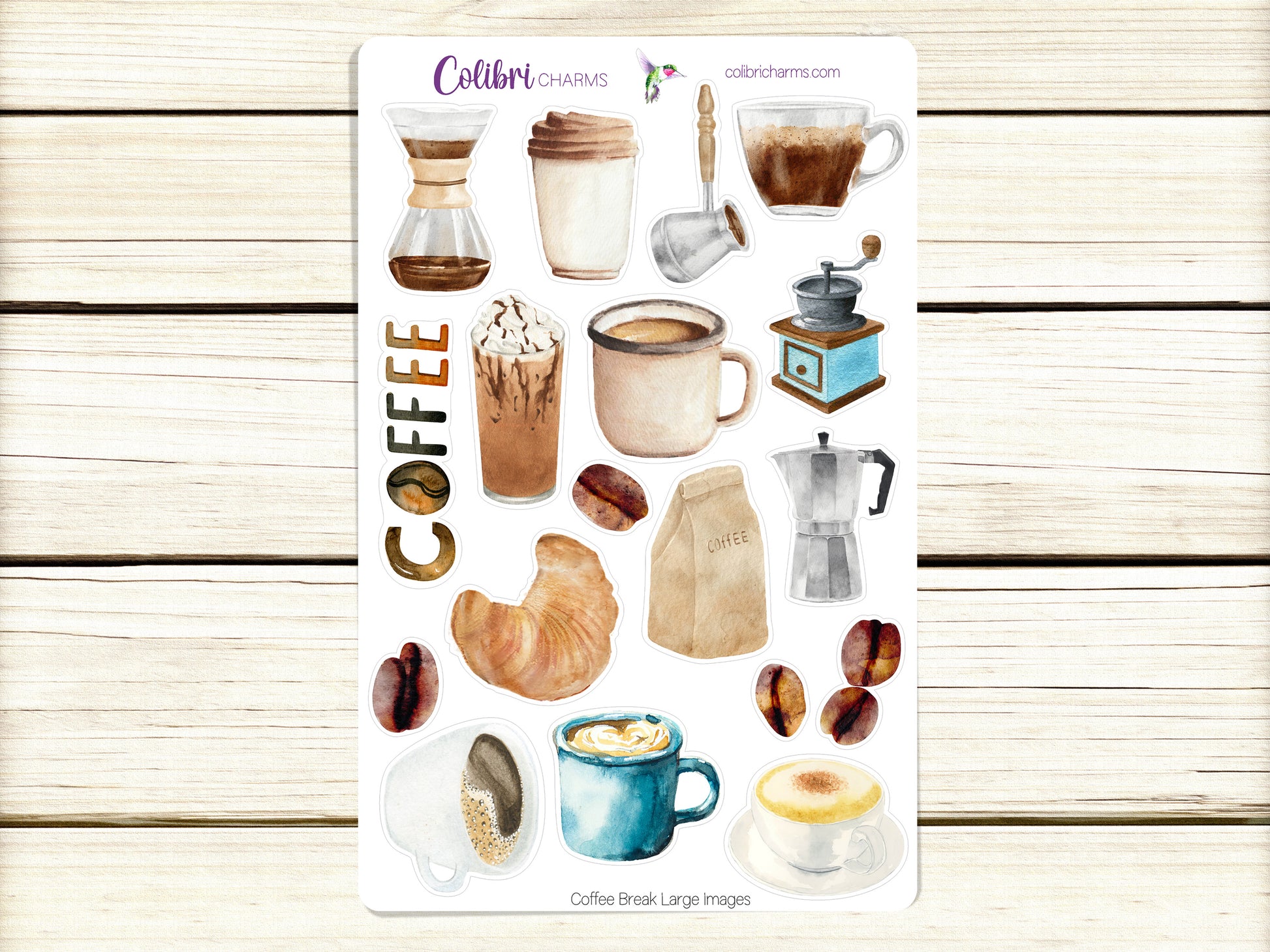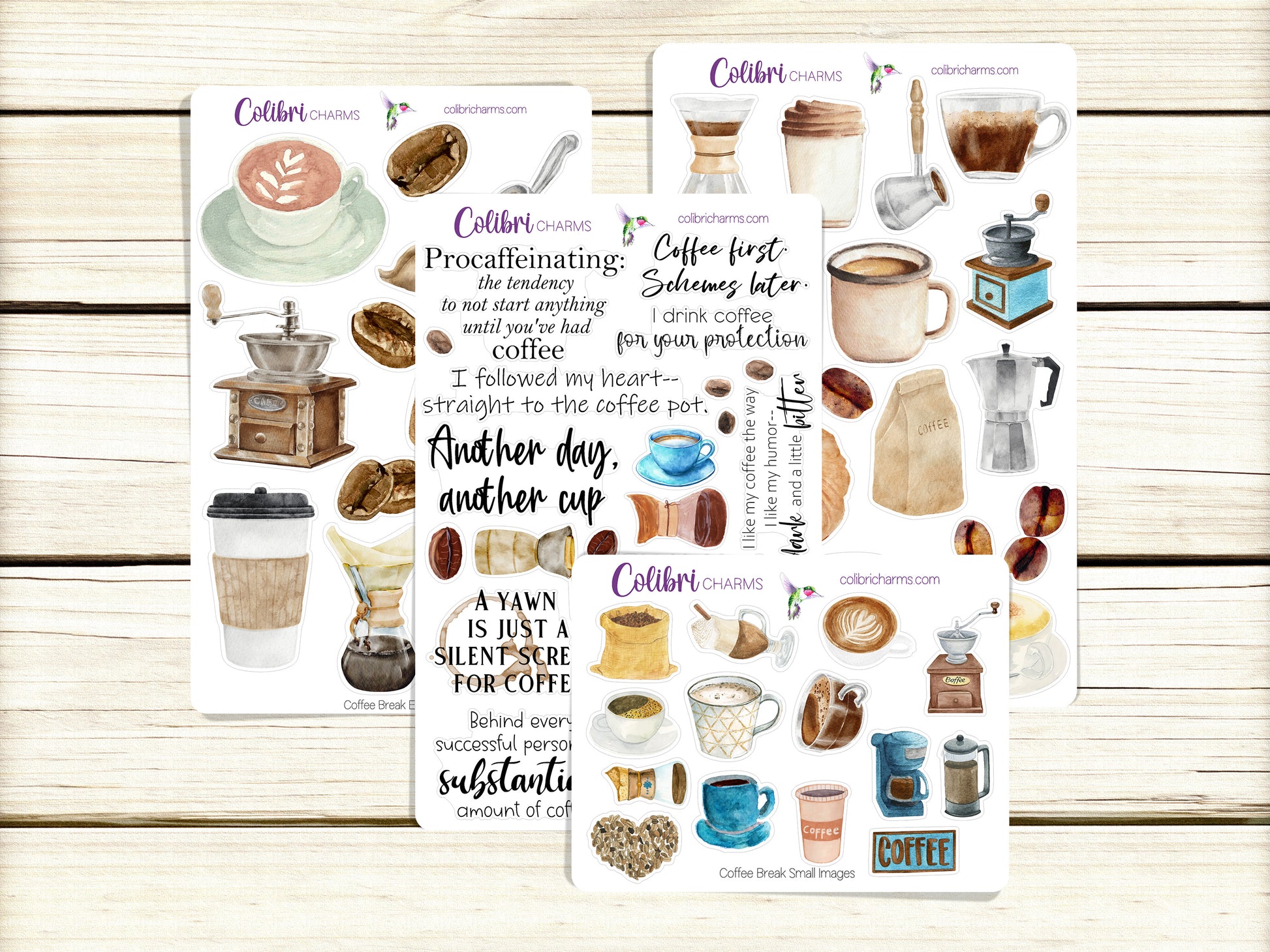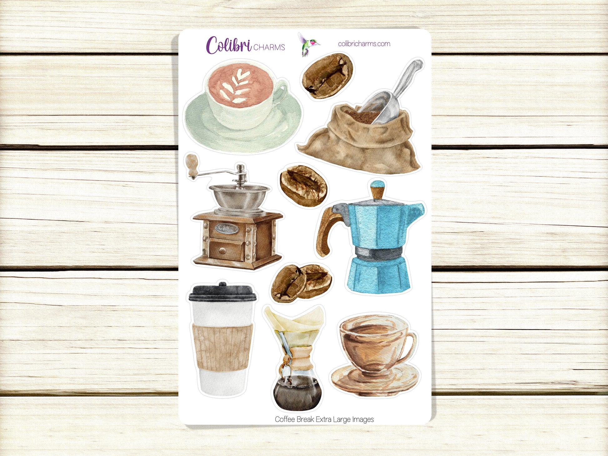 Coffee Break Planner Stickers, Caffeine Lover Deco Stickers, Handpainted Deco, Latte Planner Sticker Kit, Seasonal Planner Stickers