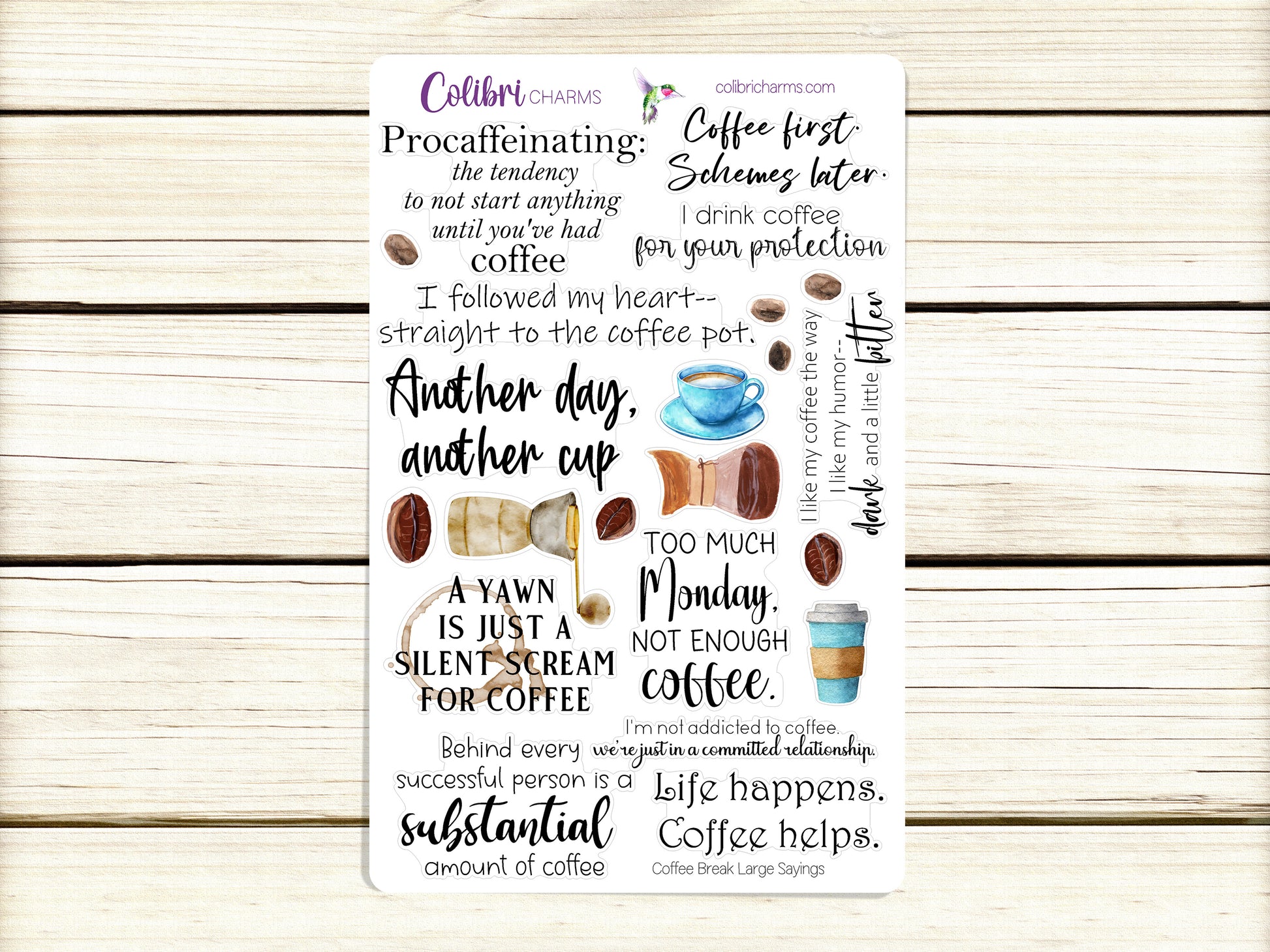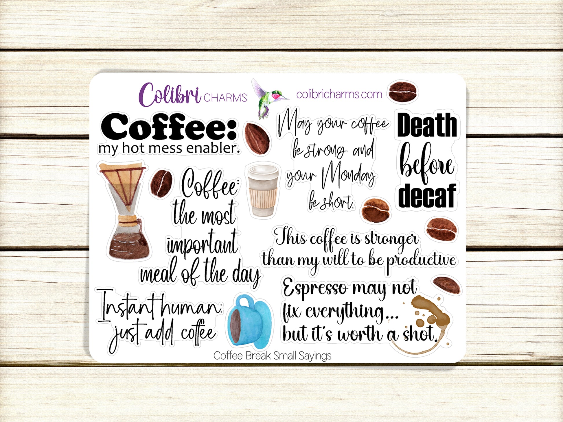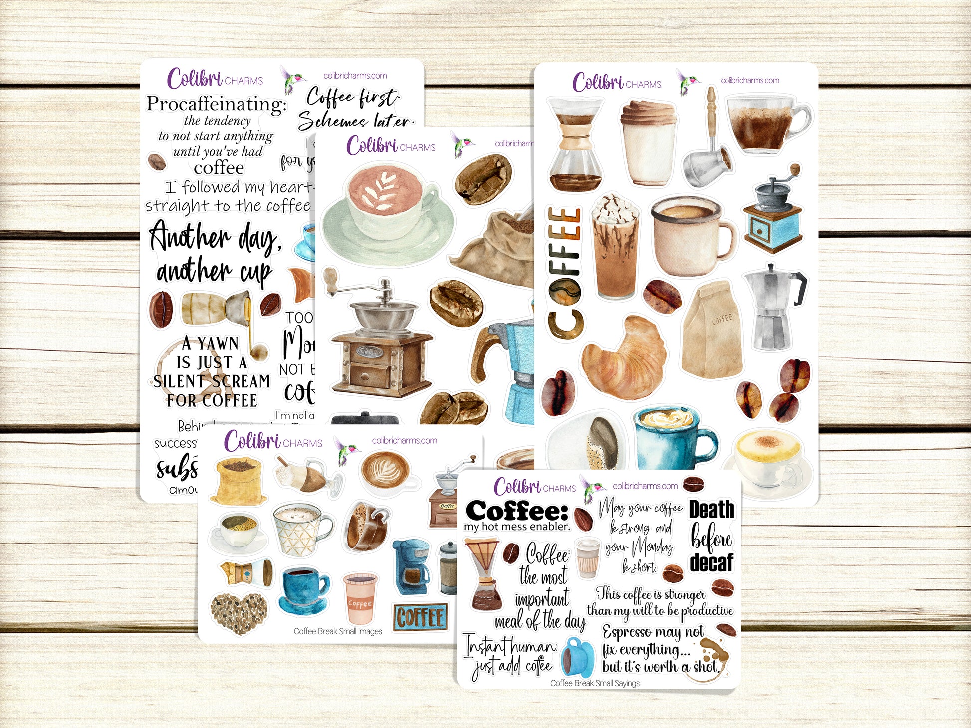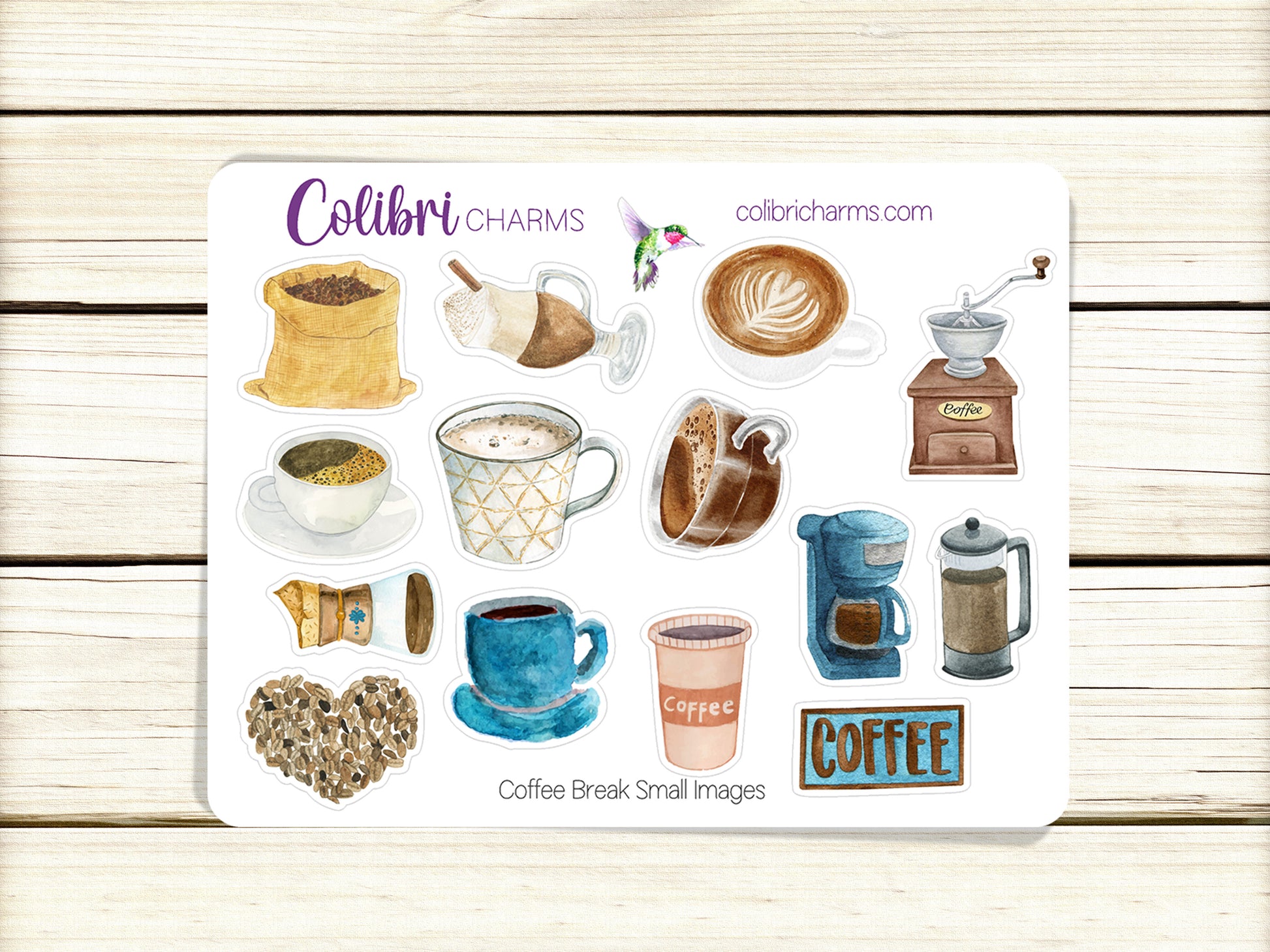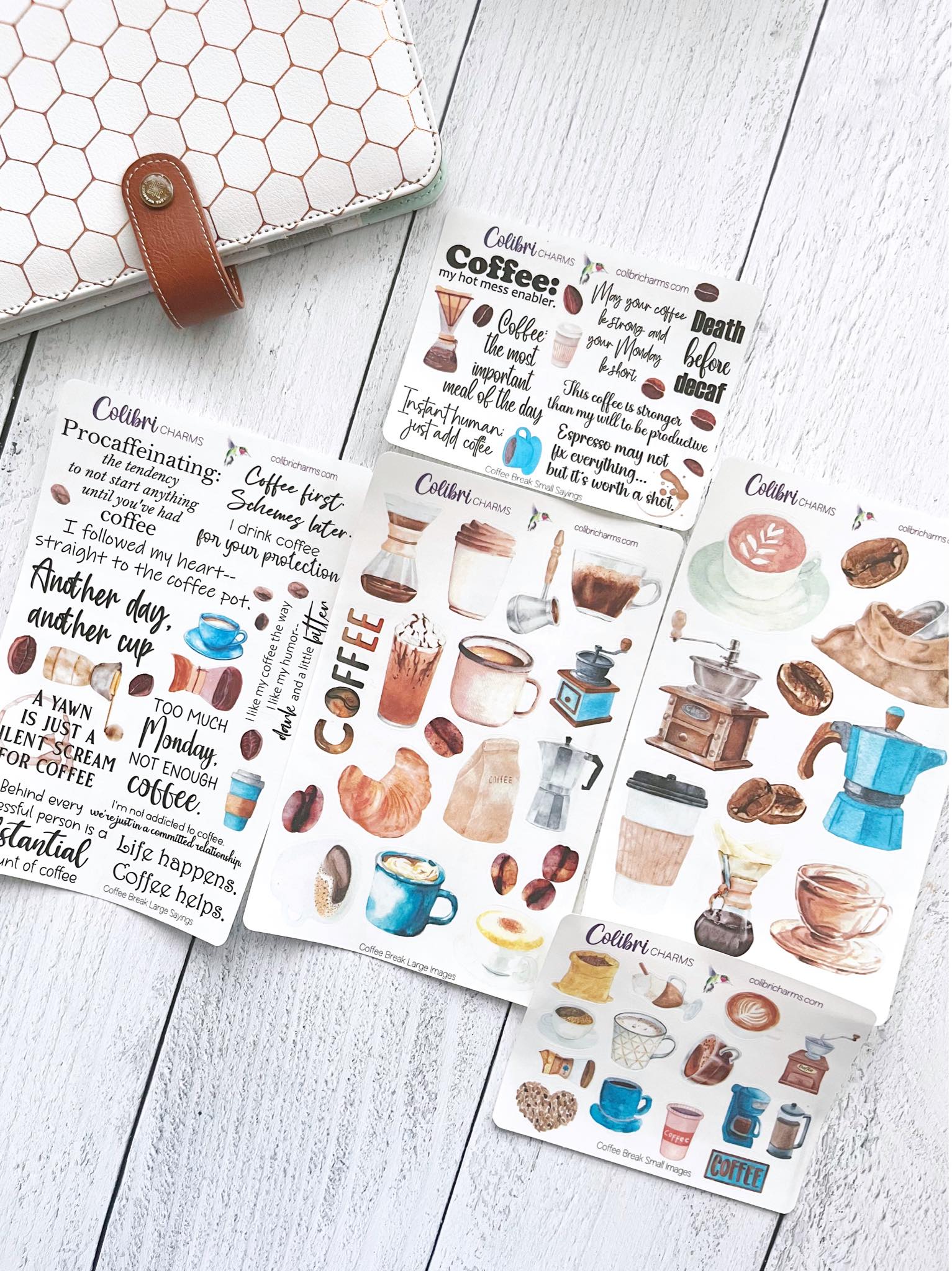 Coffee Break Planner Stickers, Caffeine Lover Deco Stickers, Handpainted Deco, Latte Planner Sticker Kit, Seasonal Planner Stickers