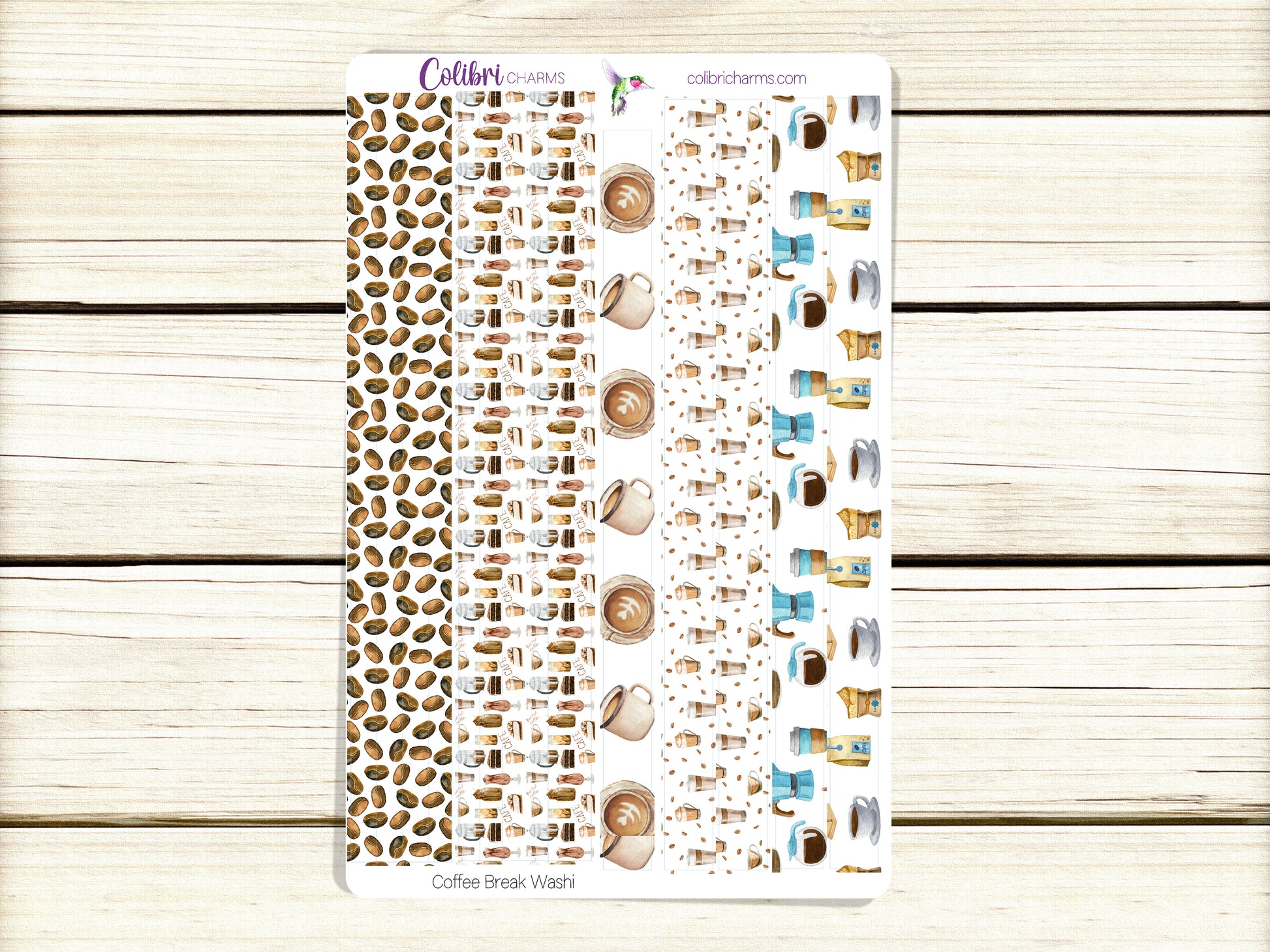 Coffee Break Washi Strip Stickers, Caffeinated Deco, Relax Planner Stickers, Seasonal Planner Stickers
