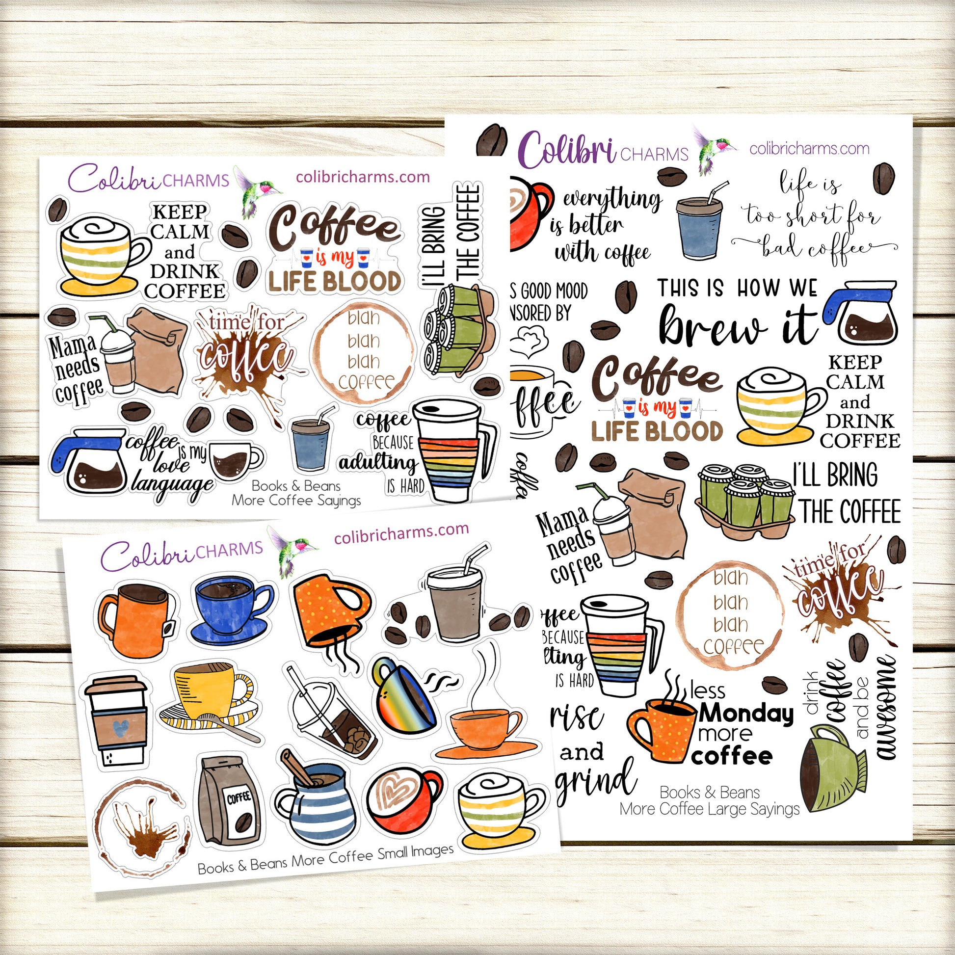 These coffee lover's stickers are perfect for your planner set up. Get individual sticker sheets, or buy them as a set at a discount. Our Books & Beans collection also features sub-collections of whimsical cats and books & reading.