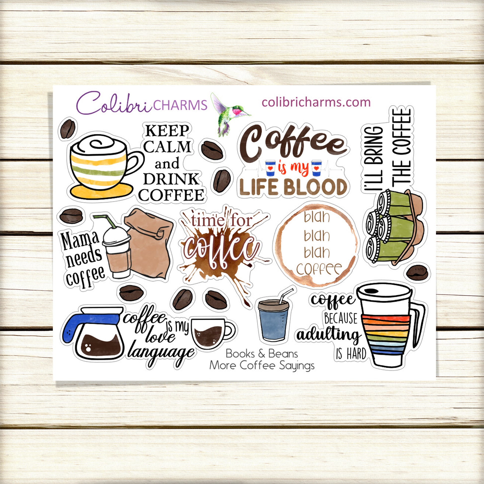 Coffee Lovers Planner Stickers | Tea Lover's Stickers | Coffee Drinker Planner Sticker Kit | Books & Beans Planner Stickers | Teacher Gift