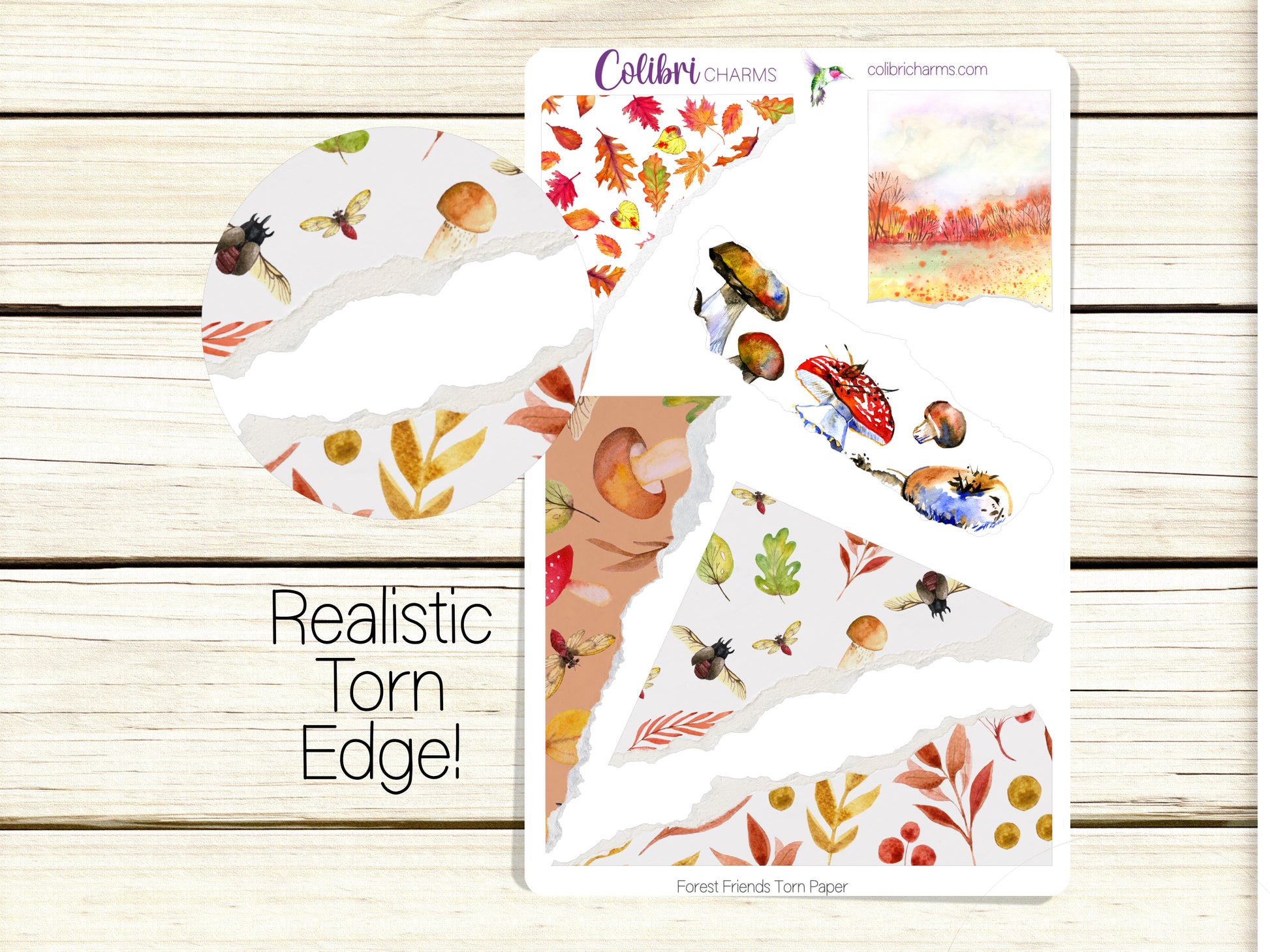 These realistic torn-paper stickers are the perfect complement for our autumn-themed collection, Forest Friends. They will look great in your planner, bullet journal, or scrapbook