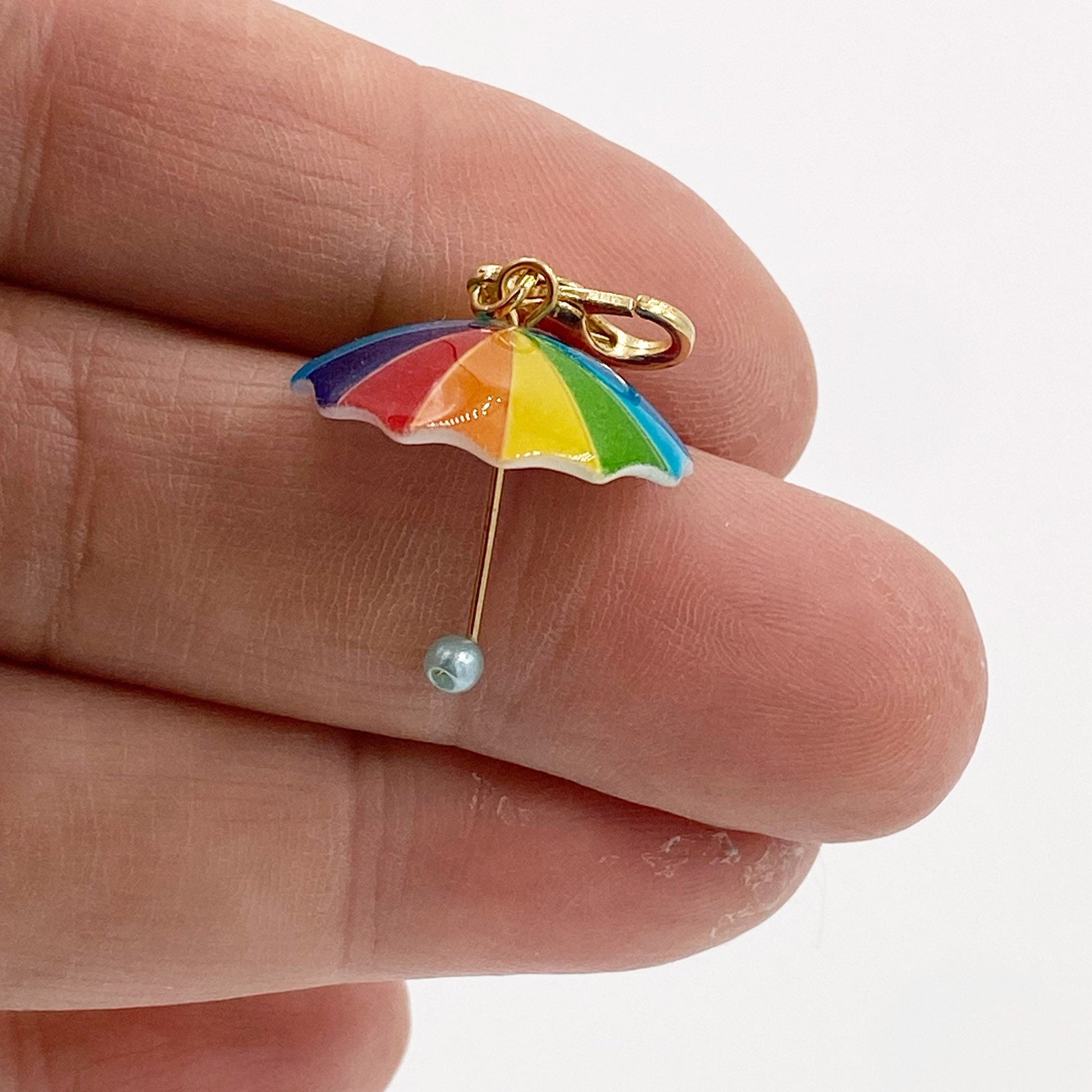 Rainbow Umbrella Bookmark | Colorful 3D Umbrella Charm | Polka Dot Umbrella Stitch Marker