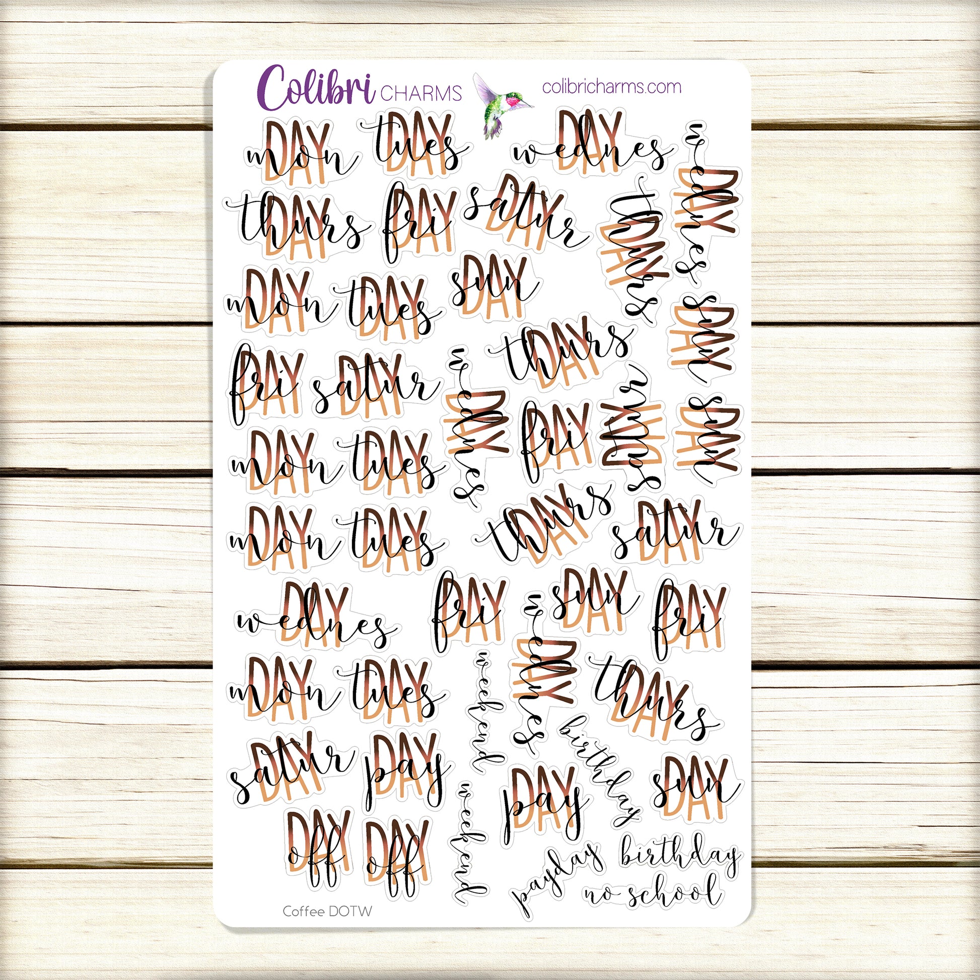 Days of the Week Planner Stickers | Coffee DOTW Stickers | Neutral Daily Stickers | Seasonal Planner Stickers