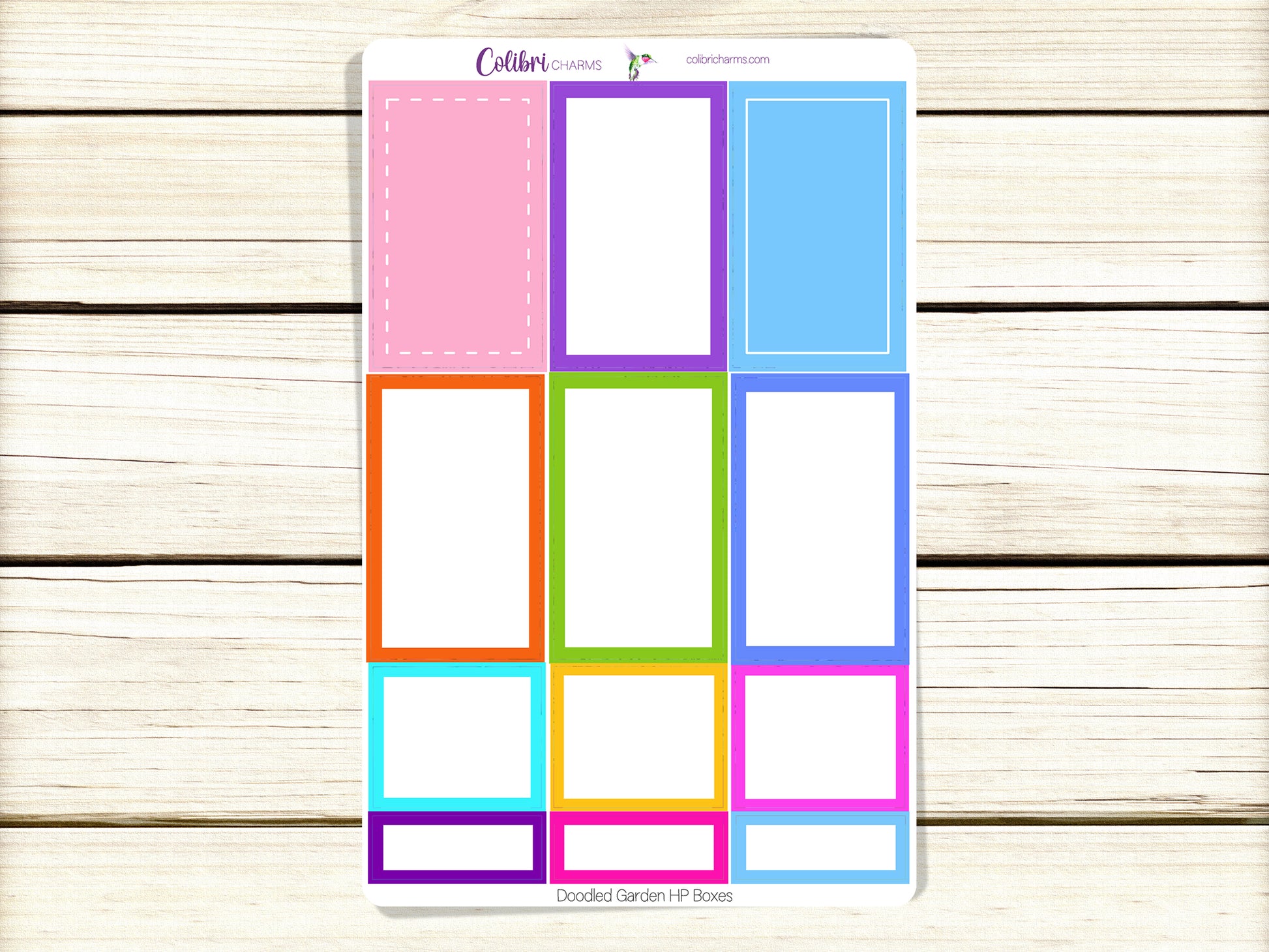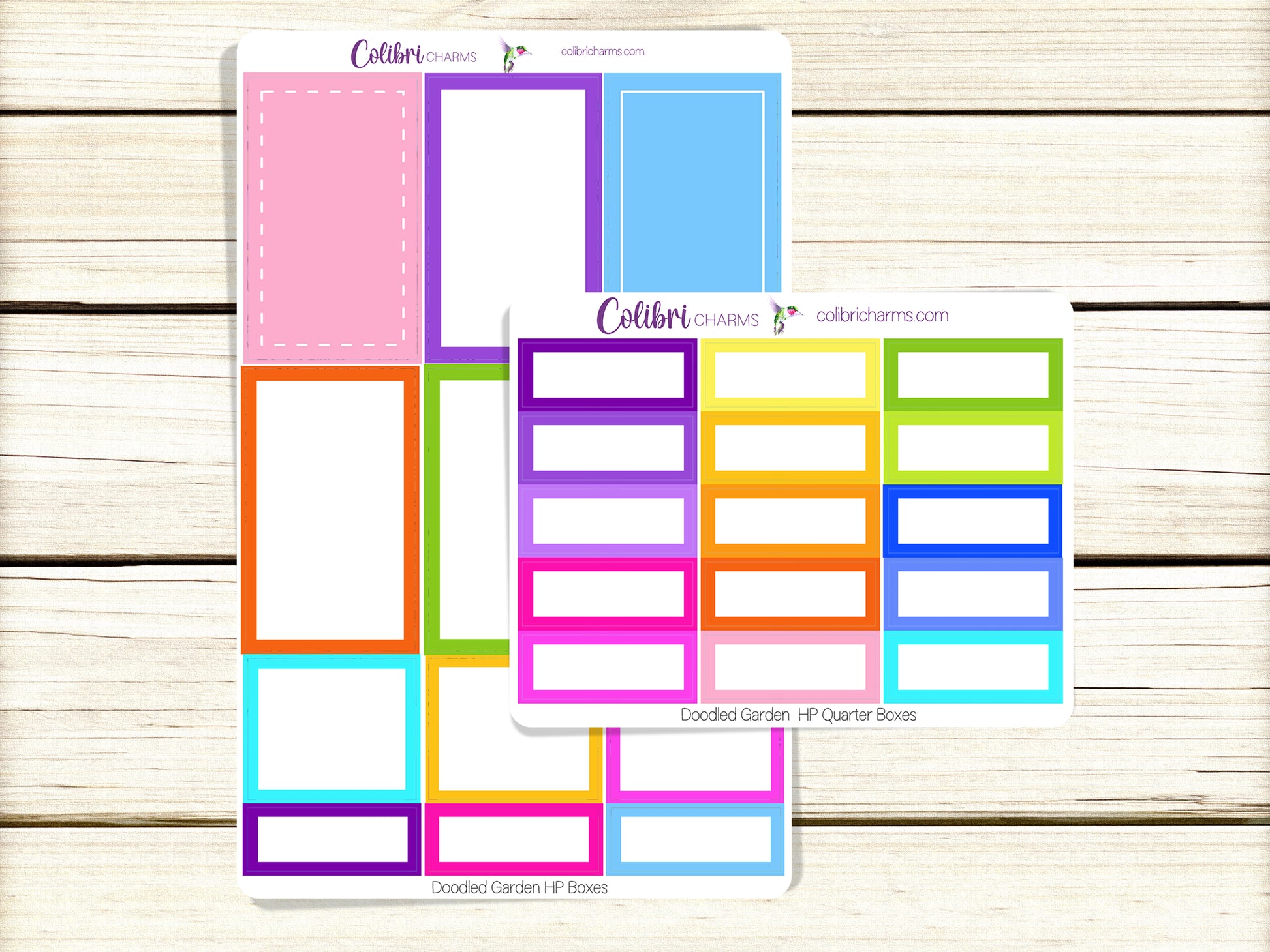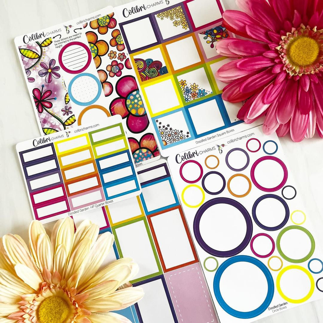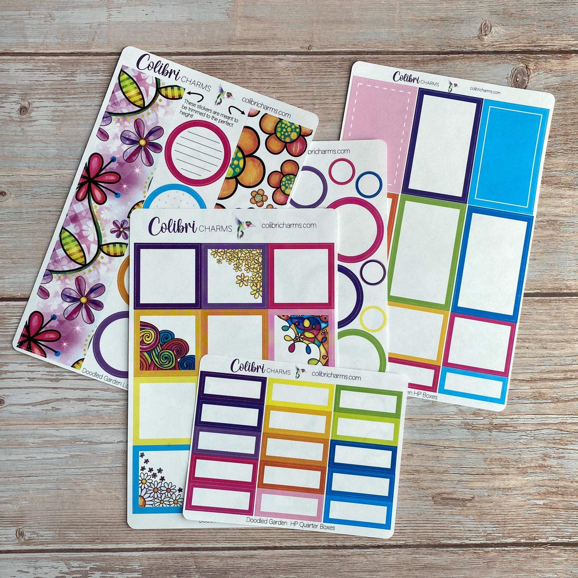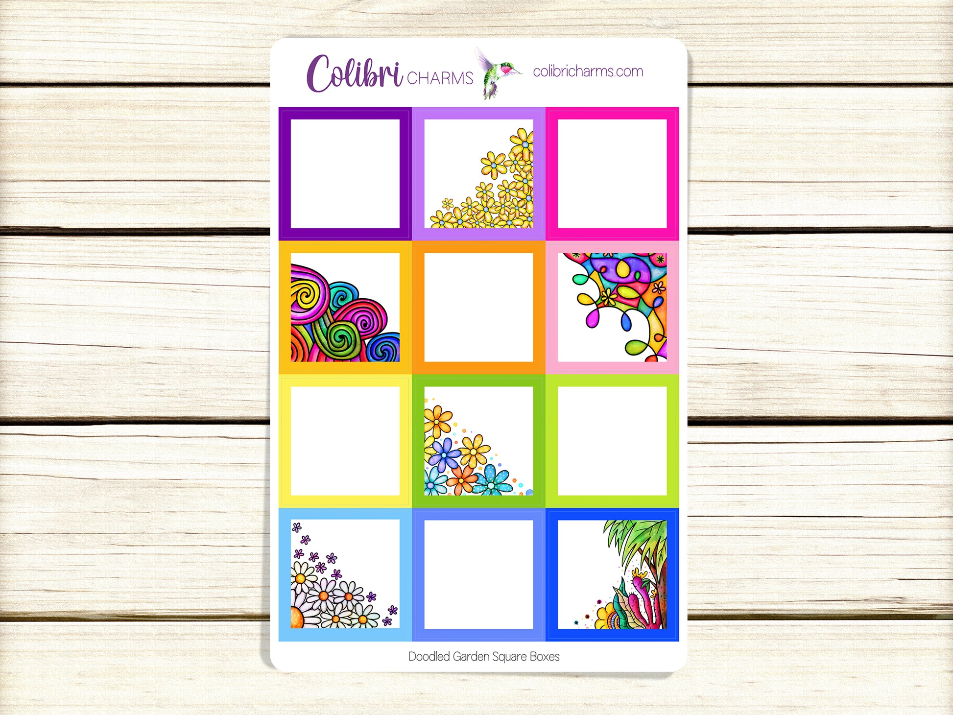 These lovely stickers coordinate with our whimsical hand-doodled collection. Get individual sticker sheets of Large, Half and Quarter Boxes, a sheet of Quarter Boxes or a sheet of Square Boxes, or buy them as a set at a discount.