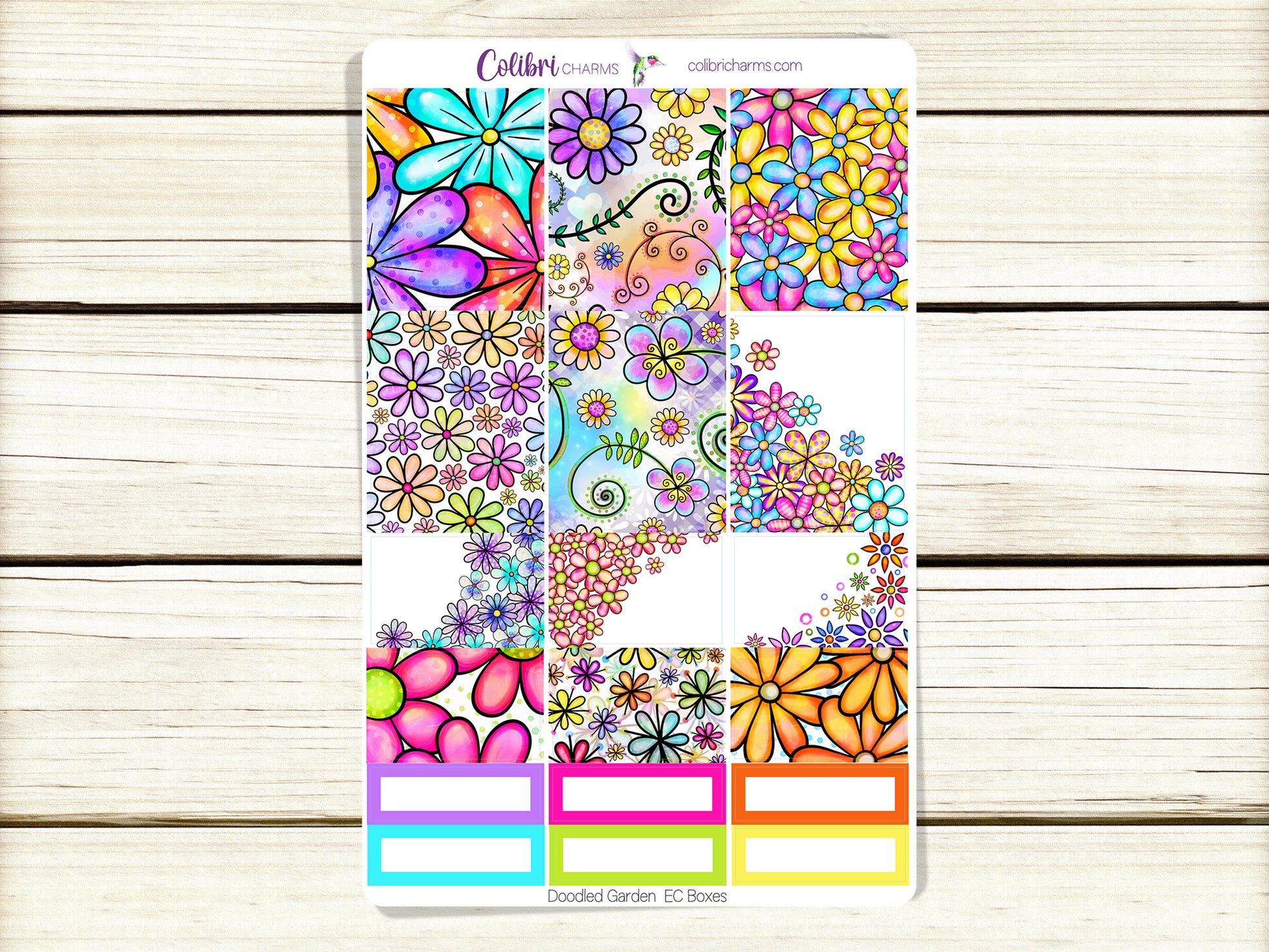 Doodled Garden Box Planner Stickers | Whimsical Flower Happy Planner Stickers | Hand Drawn Seasonal Planner | Functional Planning