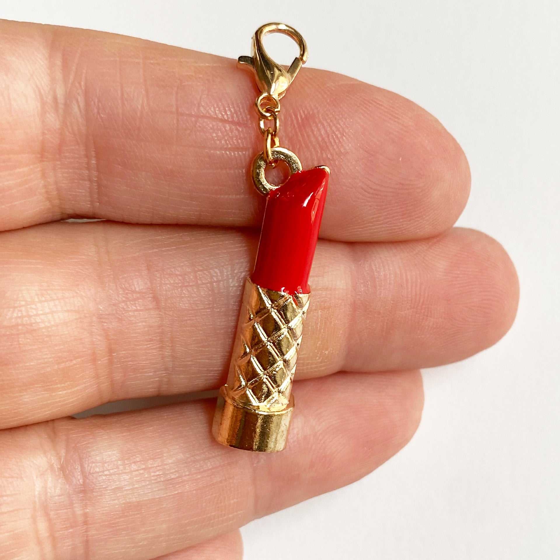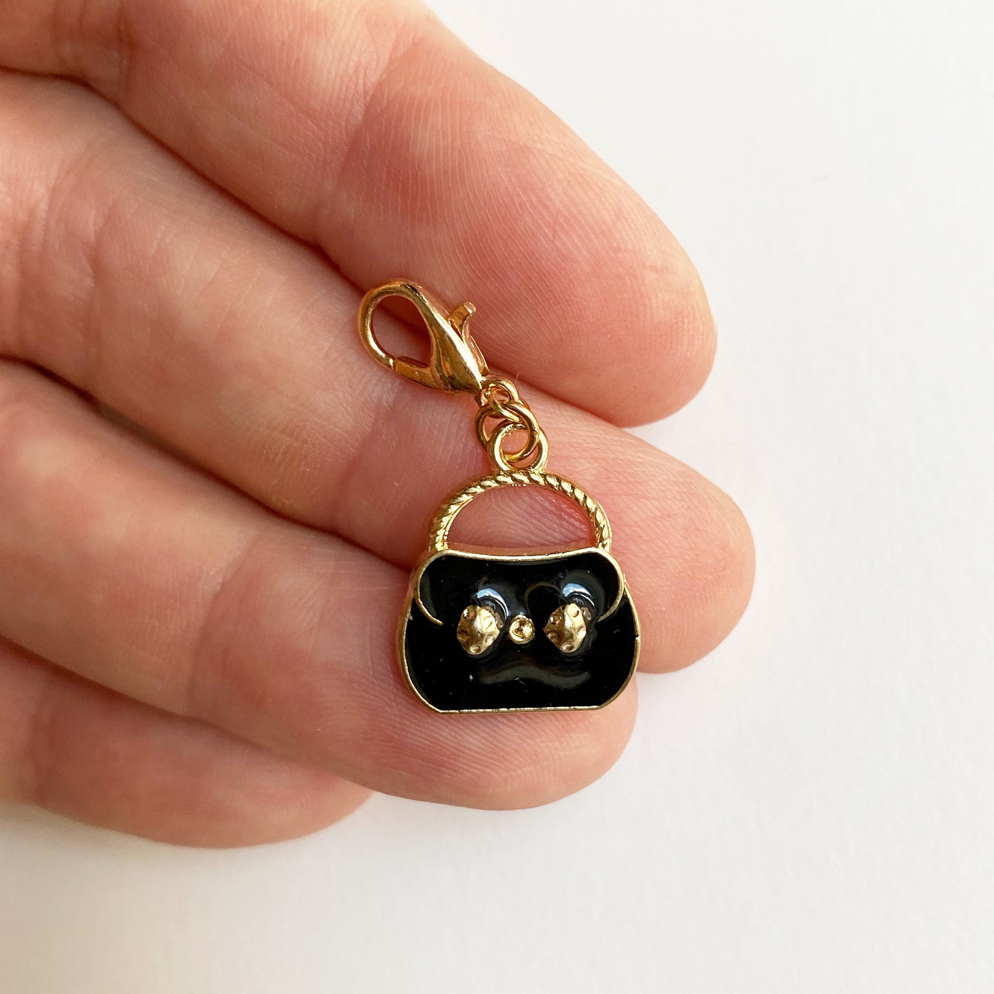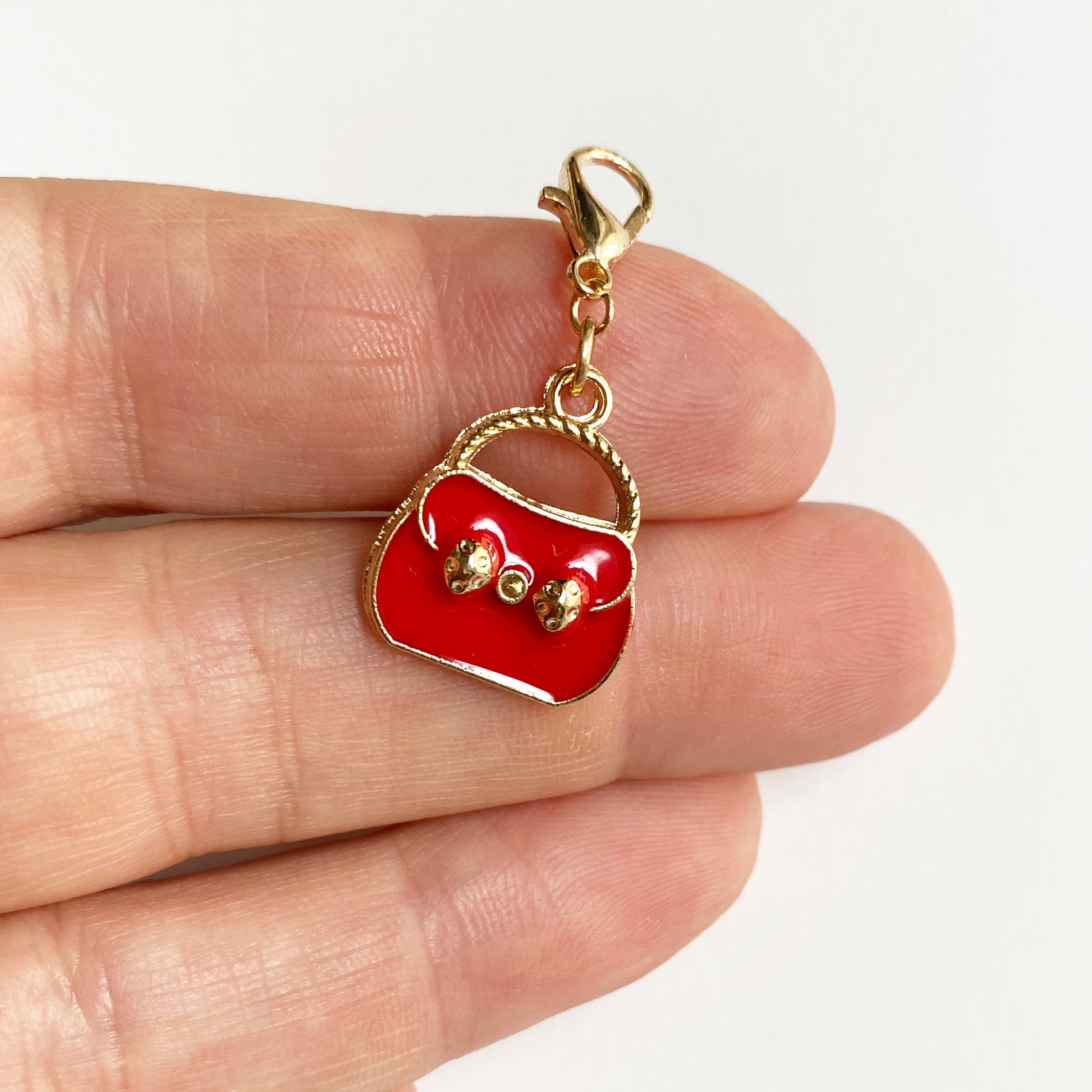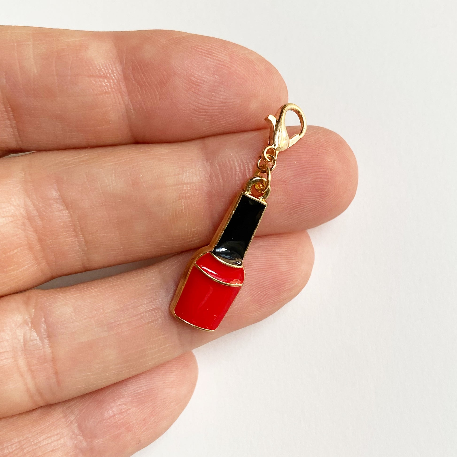 These cute fashion charms will be perfect for your planner set up, or your badge reel or knitting. Choose from a nail polish bottle, black handbag, red handbag, red lipstick, red sunglasses, black checked handbag, or black rhinestone high-heeled shoe. Available with champagne gold-tone clasp, gold jumbo paper clip, or gold-tone bookmark.