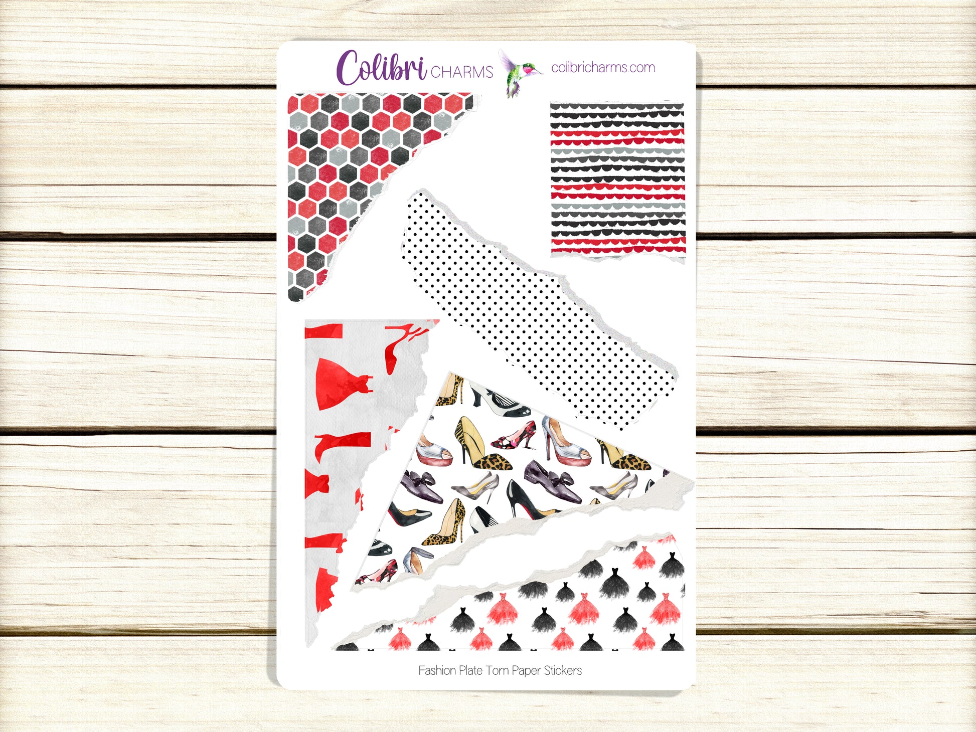 These realistic torn-paper stickers are the perfect complement for our hand-painted fashion-themed collection, Fashion Plate. They will look great in your planner, bullet journal, or scrapbook.