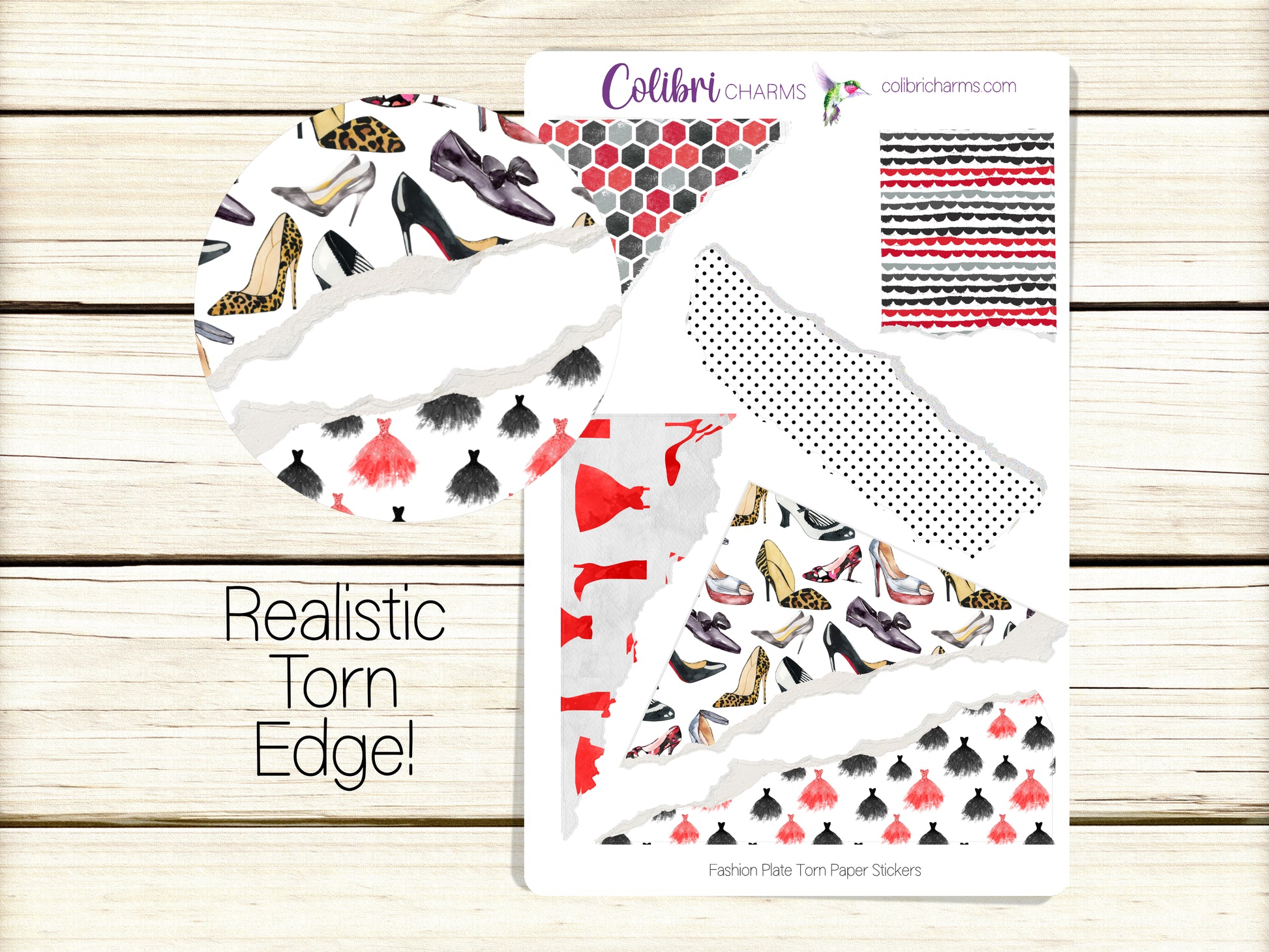 Fashion Plate Torn Paper Stickers, Couture Deco Planner Stickers, Distressed Ripped Paper