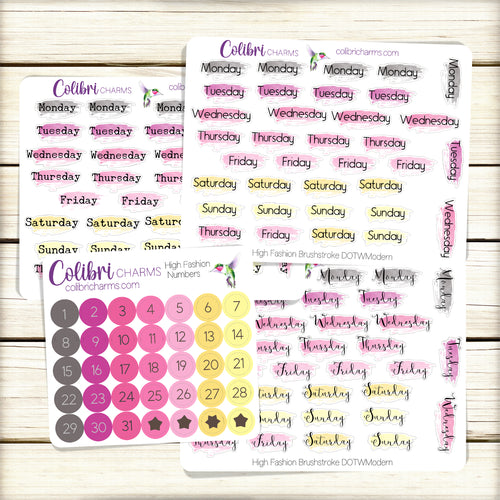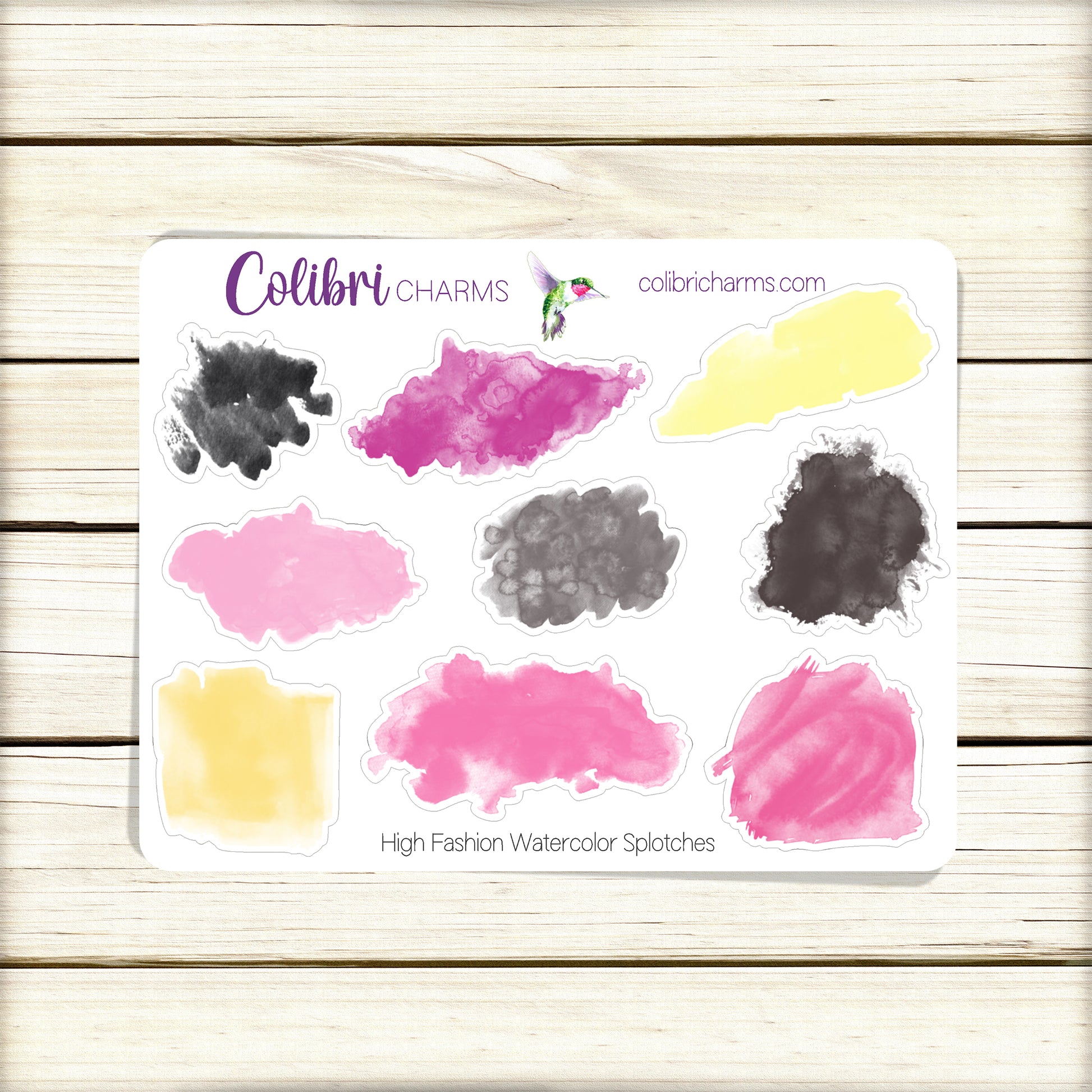 Our popular watercolor splotches stickers are perfect for your planner set up. They coordinate with our High Fashion collection, full of luxury brands and couture.