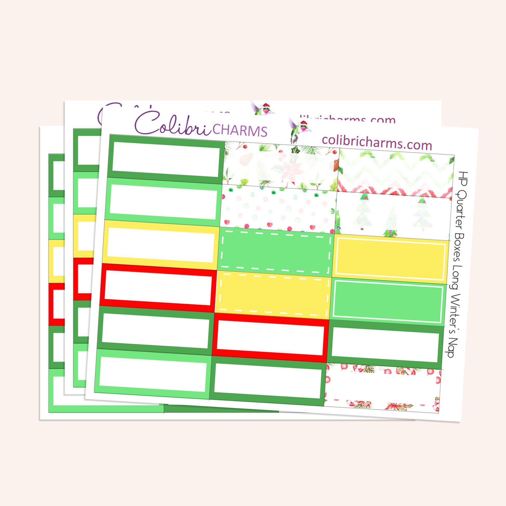 These fun stickers coordinate with our holiday Long Winter’s Nap collection. Get individual sticker sheets of Large, Half and Quarter Boxes or a sheet of Quarter Boxes, or buy them as a set at a discount.