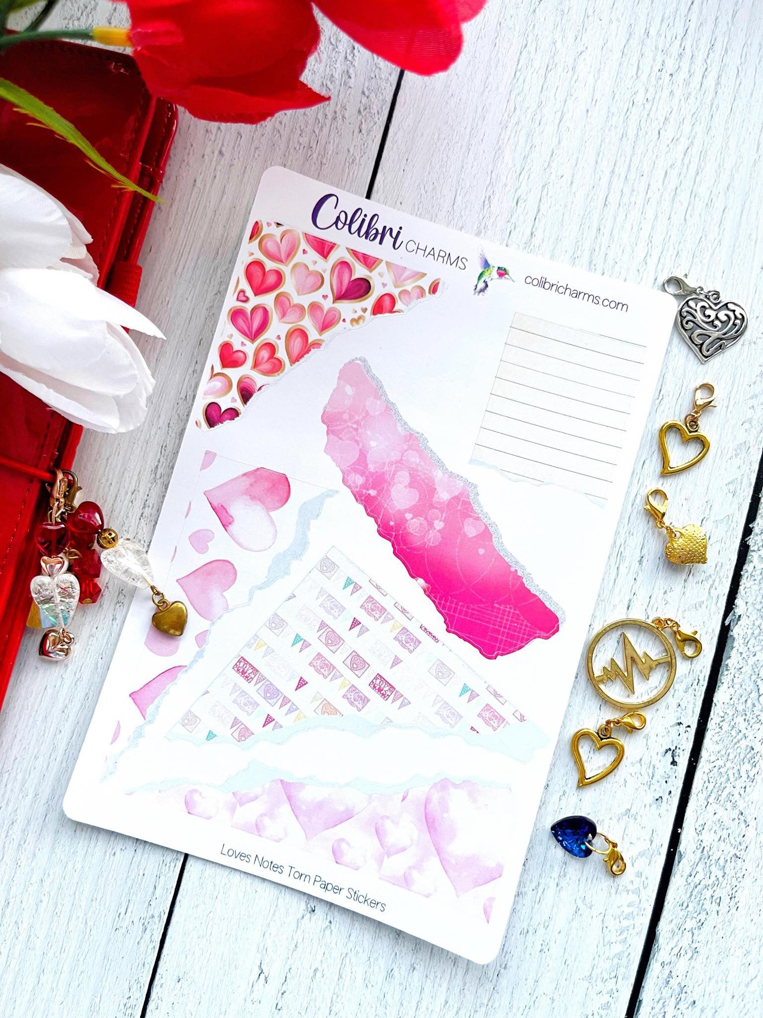 Love Notes Torn Paper Stickers, Valentine's Day Deco Planner Stickers, Distressed Ripped Paper