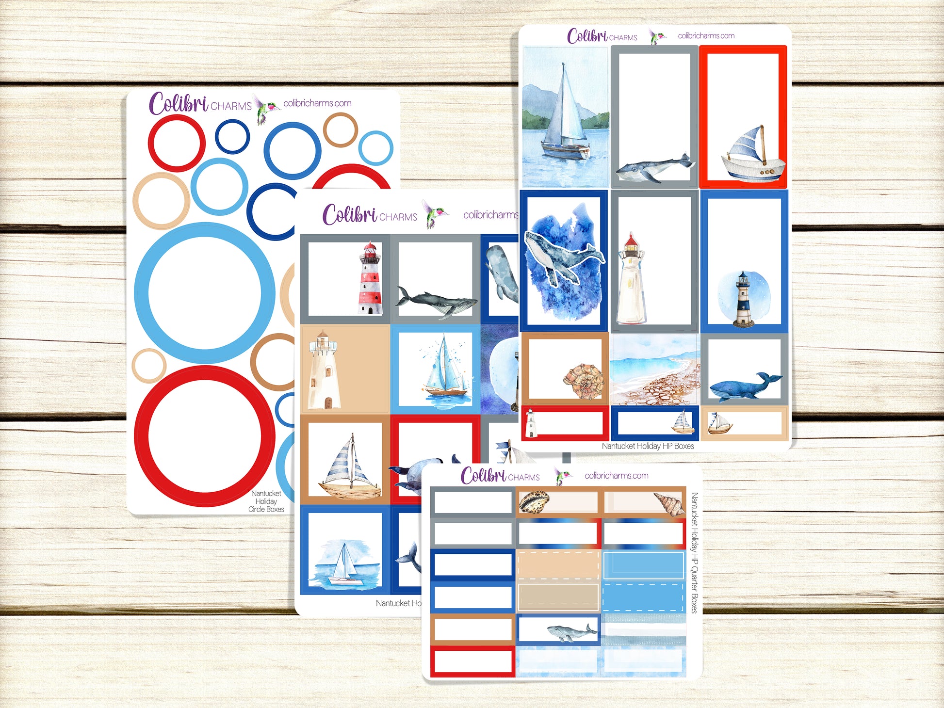 Nantucket Box Planner Stickers | Whale Stickers | Lighthouse Stickers | Happy Planner Stickers | Seasonal Planner | Summer