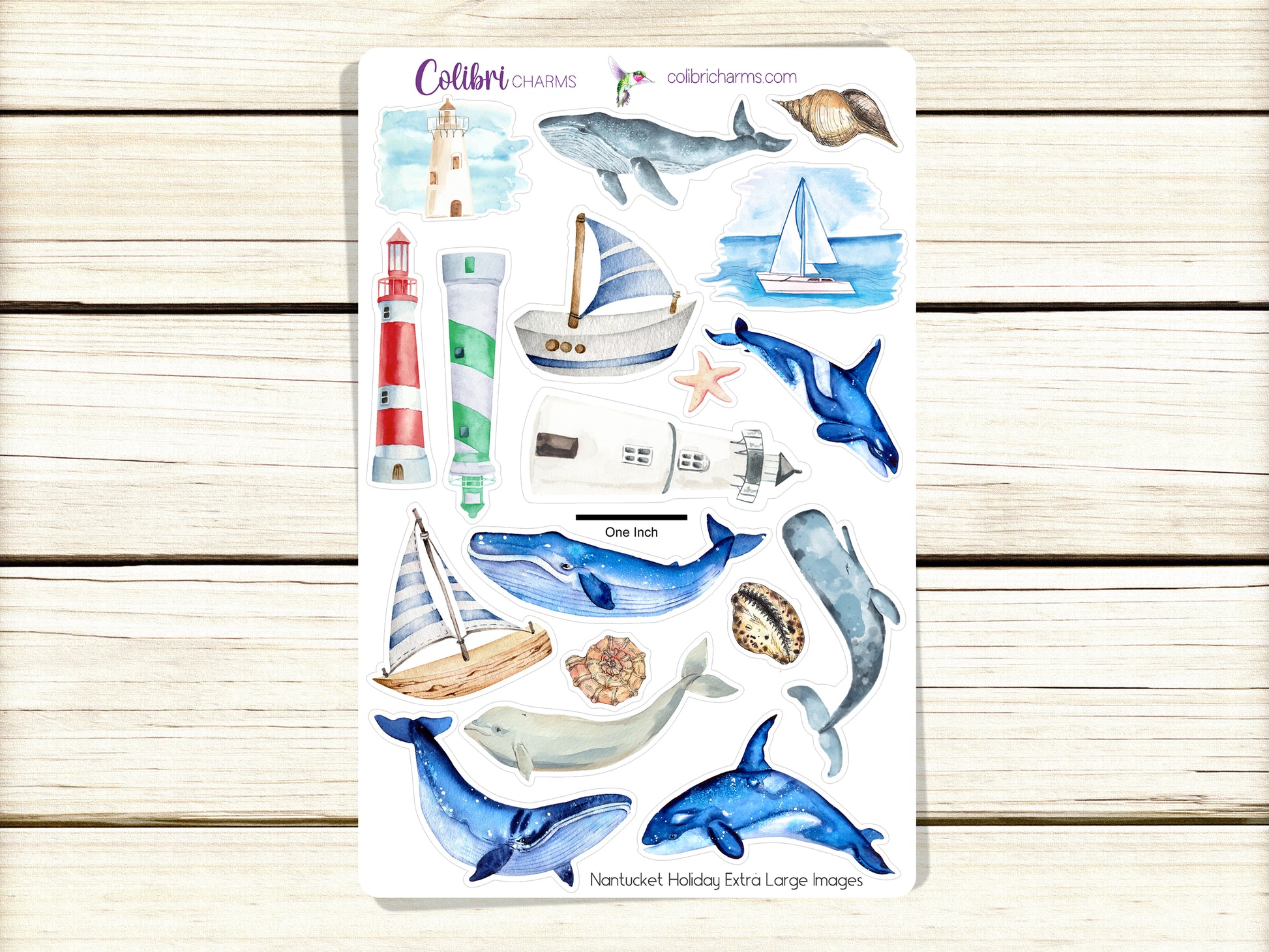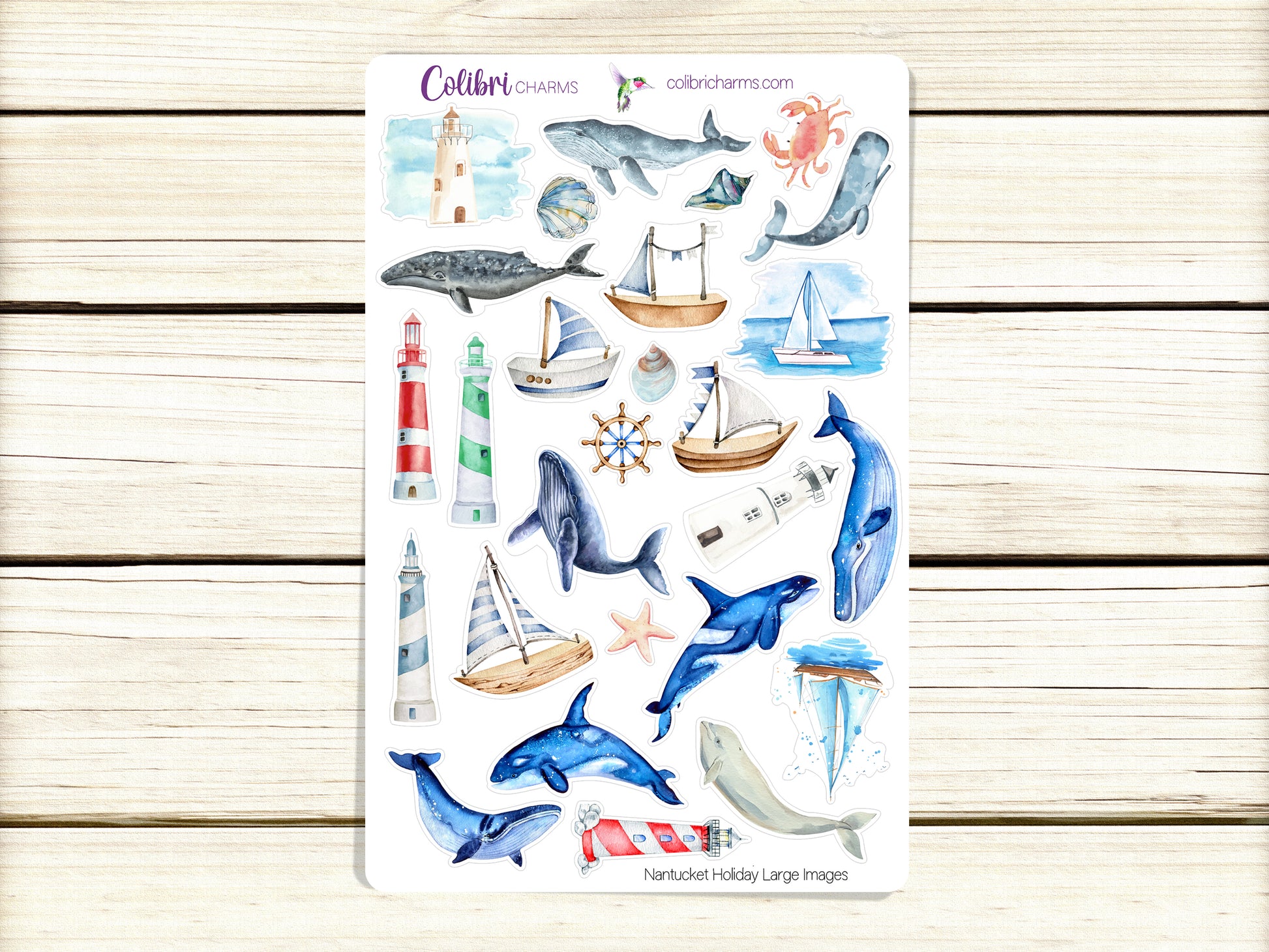 Nantucket Holiday Planner Stickers | Whales Stickers | Lighthouses | Sailboat Planner Sticker Kit | Seasonal Planner Stickers