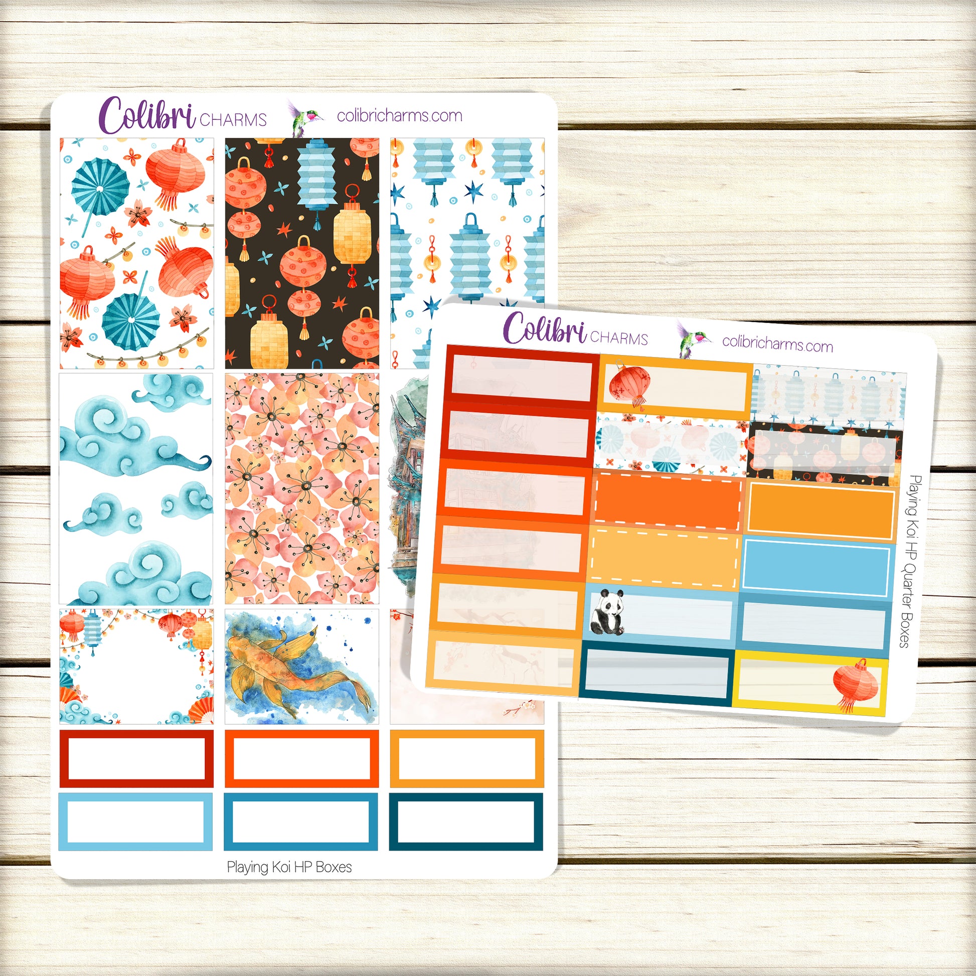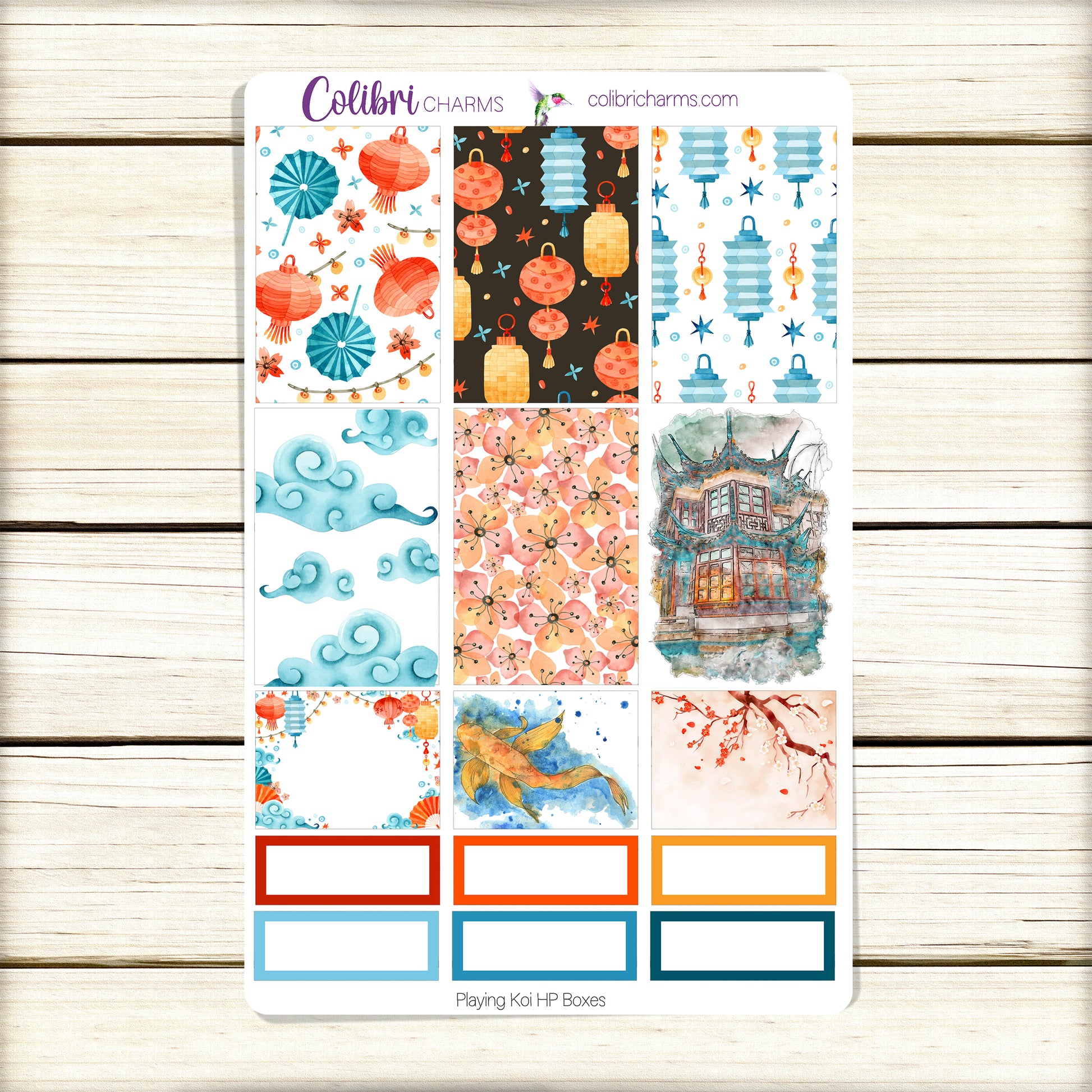 Playing Koi Box Planner Stickers | Chinoiserie Stickers | Chinese Lantern Stickers | Happy Planner Stickers | EC Stickers