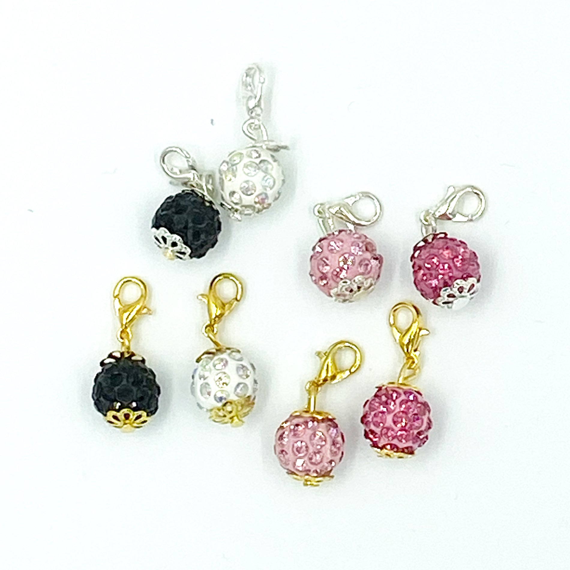 Rhinestone Planner Charms | Sparkly Fashion Dangles - Pink, Rose, Black, White | Beaded Stitch Marker | Progress Keeper