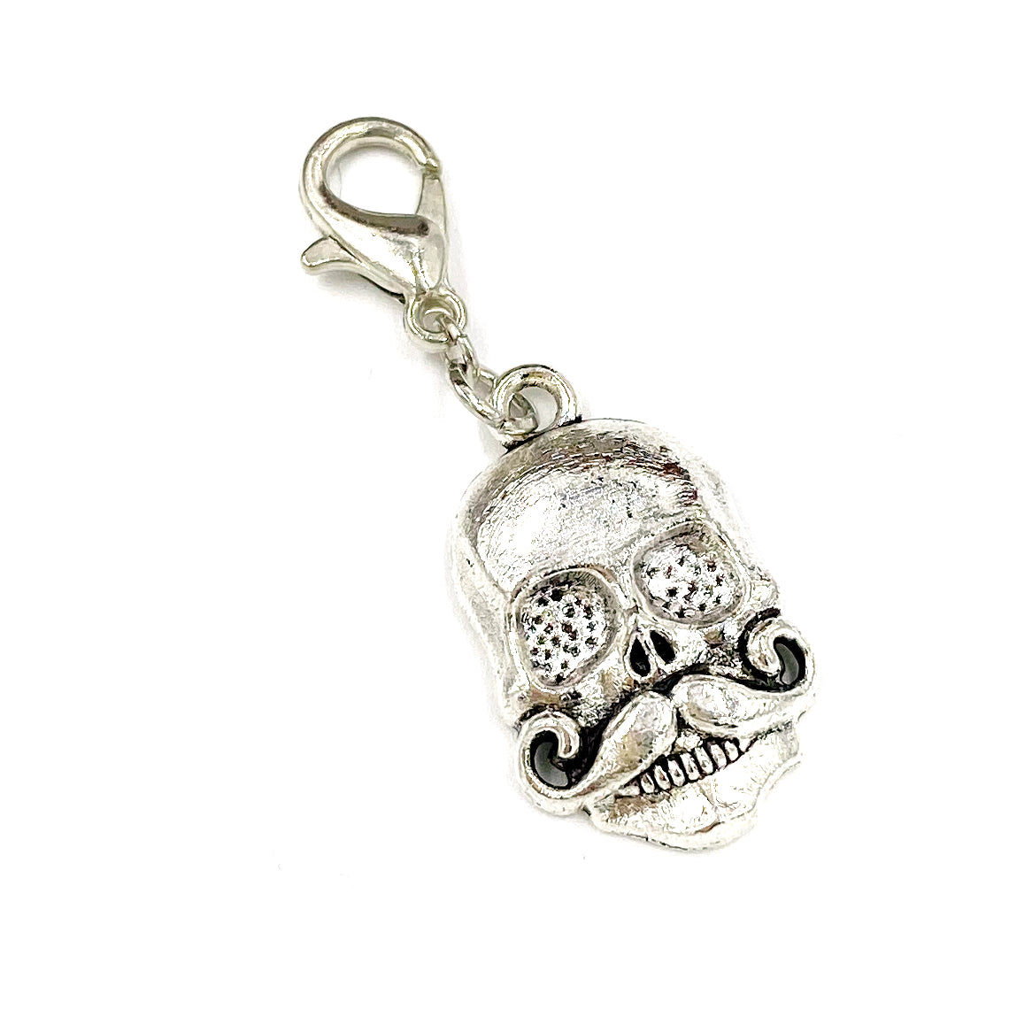 This quirky, mustachioed skull charm is perfect for your steampunk-themed planner, knitting or crochet. It is available on a silver-tone lobster clasp, large ring clasp, jumbo paper clip, or metal bookmark. Coordinates with our Like Clockwork collection.