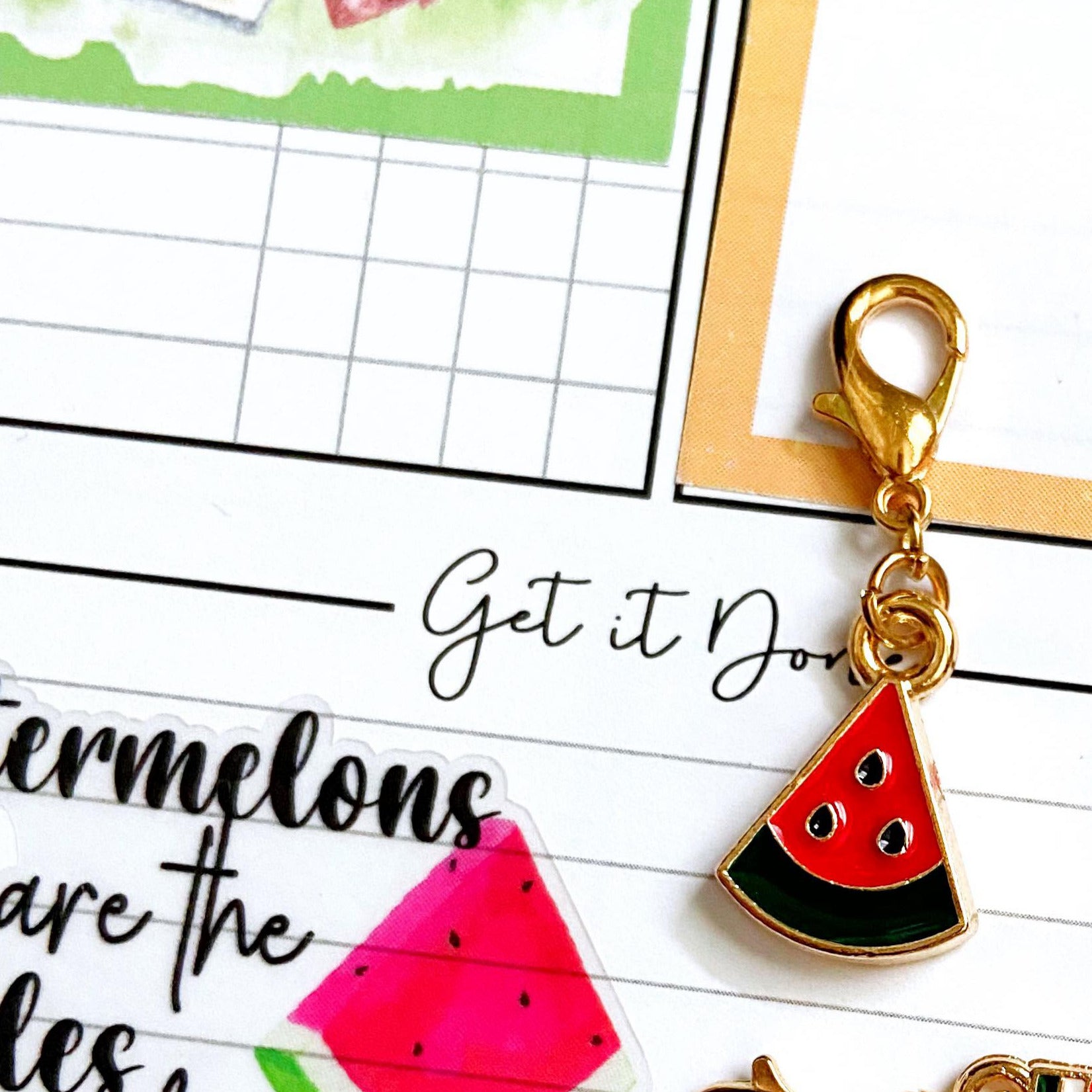 Watermelon Charms | Enamel Fruit Planner Clip | Watermelon Slice Stitch Marker | Progress Keeper