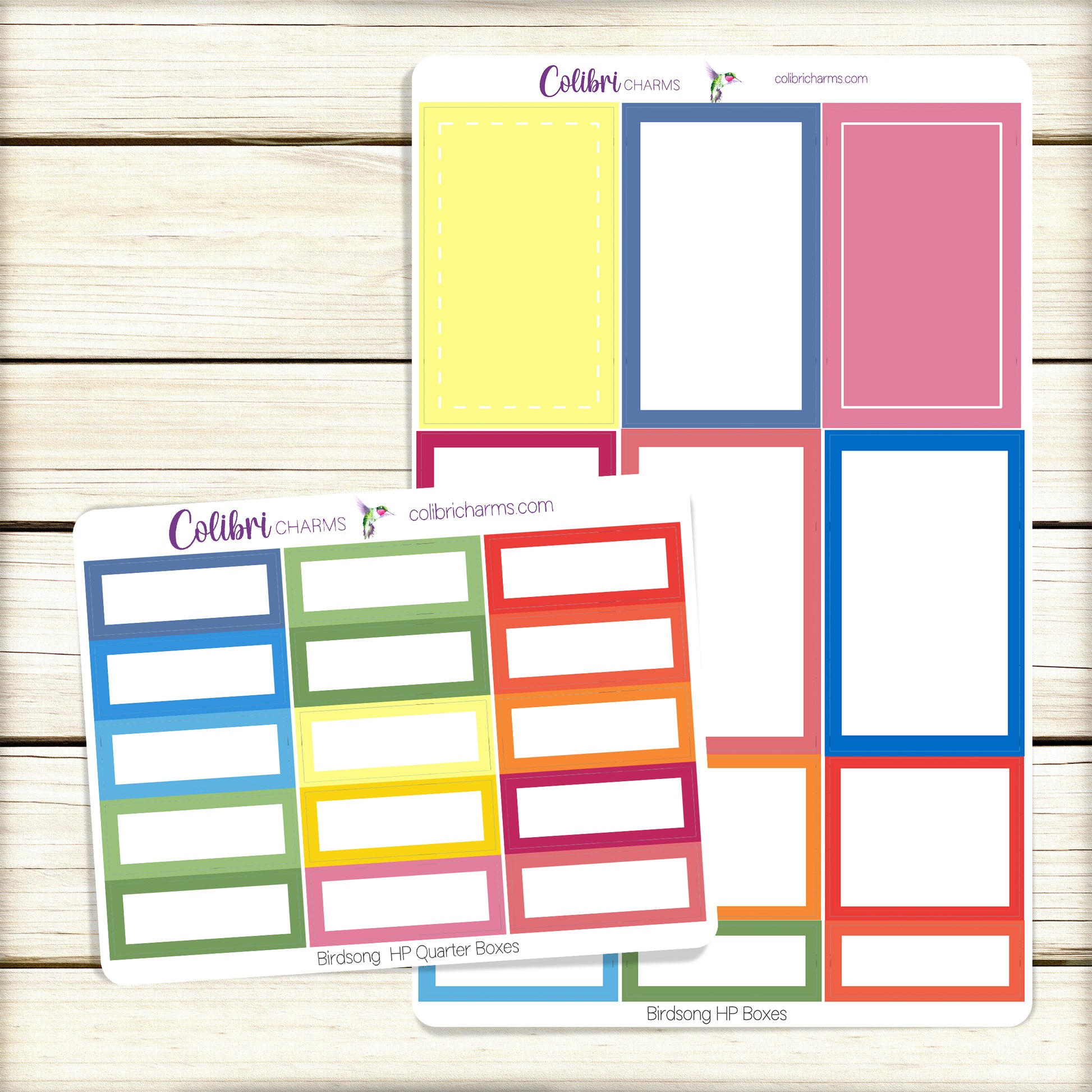 These lovely stickers coordinate with our Birdsong collection. Get individual sticker sheets of Large, Half and Quarter Boxes, a sheet of Quarter Boxes or a sheet of Square Boxes, or buy them as a set at a discount.