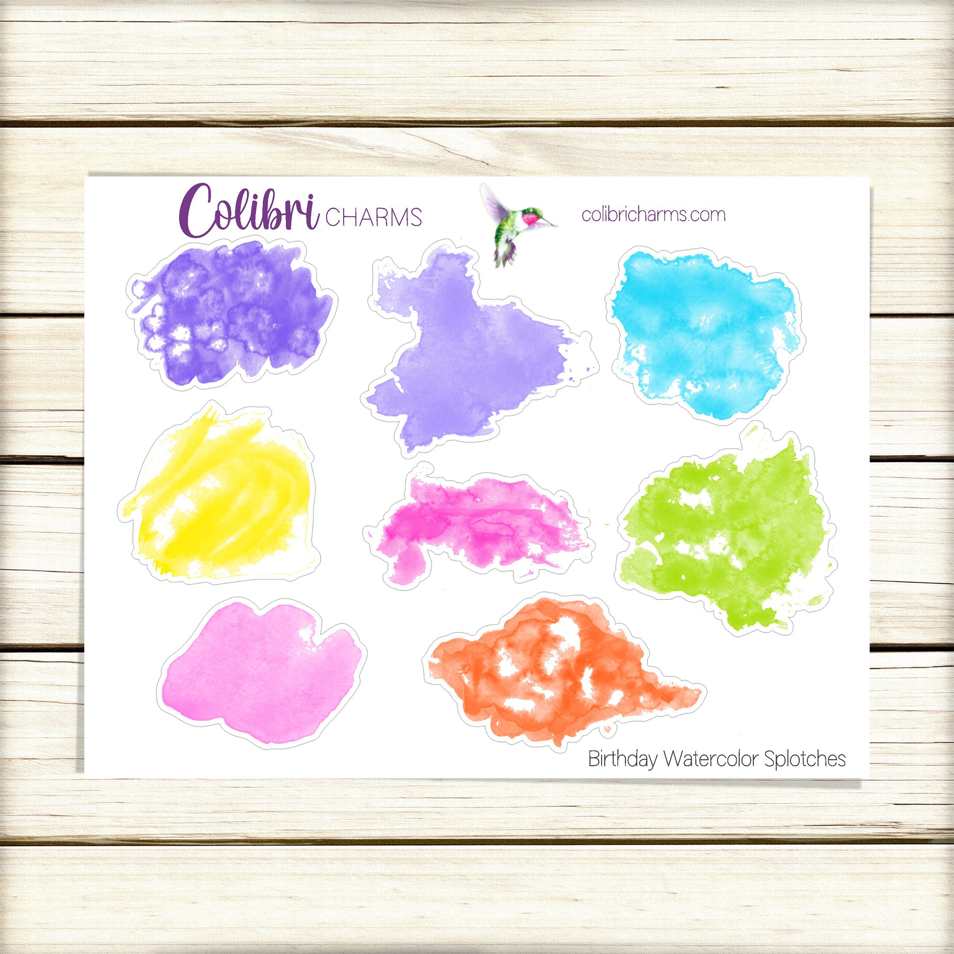 Birthday Watercolor Splotches Planner Stickers | Celebration Paint Swatch Stickers | Bullet Journal