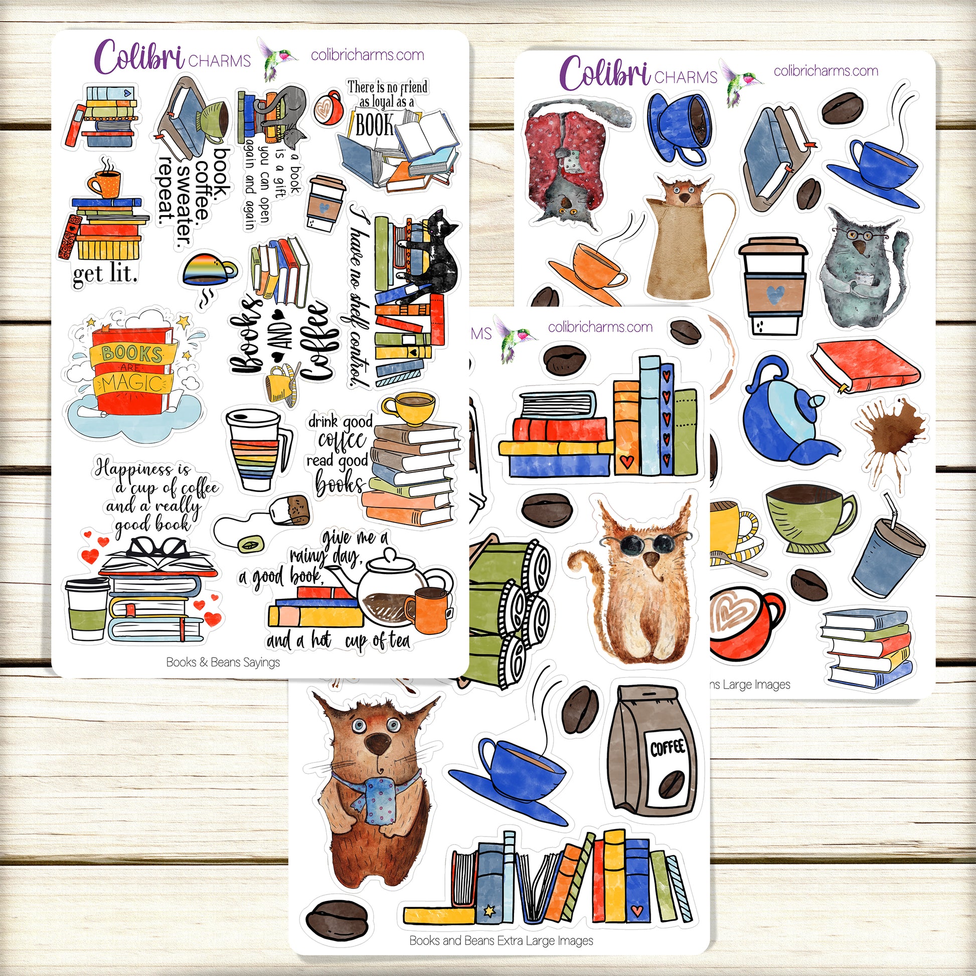 Reading Journal Stickers, Books & Beans Planner Stickers, Coffee and Cats Planner Sticker Kit, Seasonal Planner Stickers