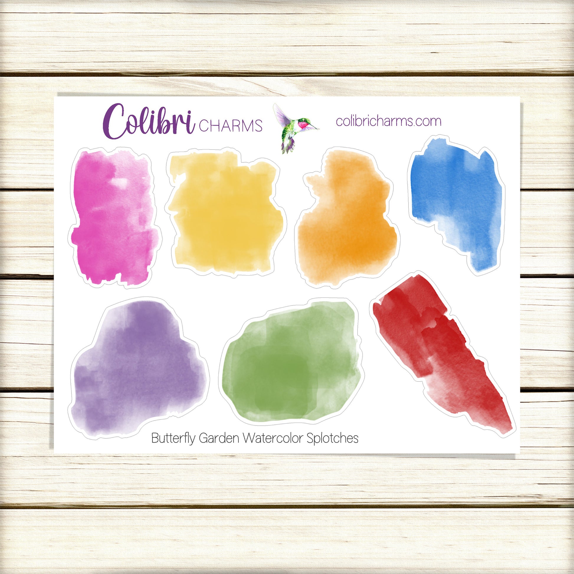 Butterfly Garden Watercolor Splotches Planner Stickers | Spring Paint Swatch Stickers | Colorful Splashes