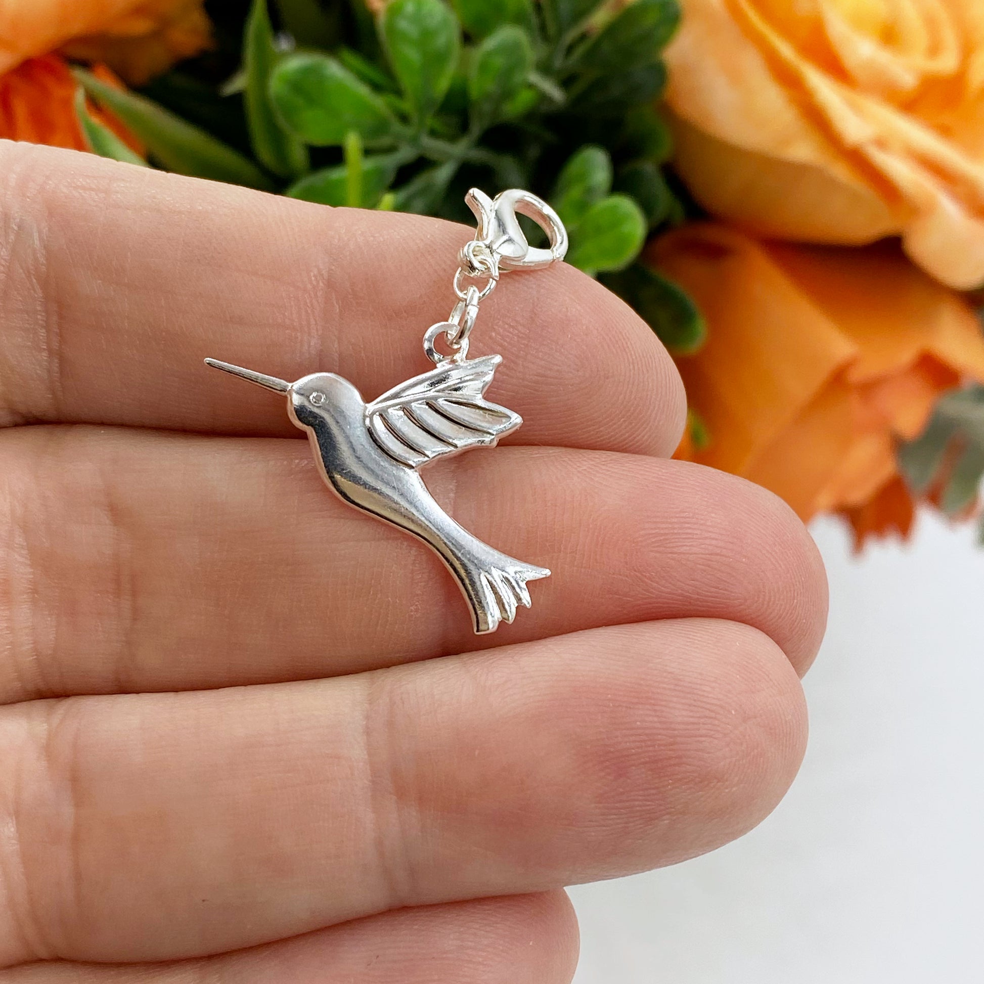 This lovely little hummingbird is stamped from silver-tone metal. Very lightweight, it’s perfect for your planner, knitting or crochet. Its available on a silver lobster clasp, large silver ring clasp, silver jumbo paper clip or silver bookmark.