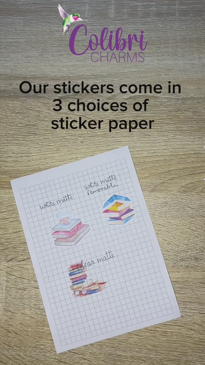 These stickers are laser-printed on high-quality, matte clear (for that washi look) or matte white or removable matte white sticker paper and cut with a digital cutting machine with a high degree of accuracy.