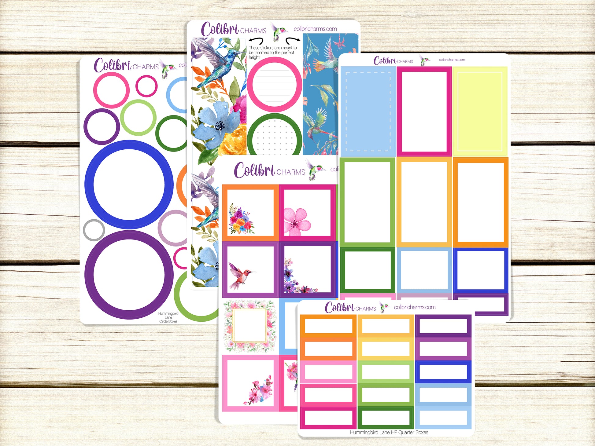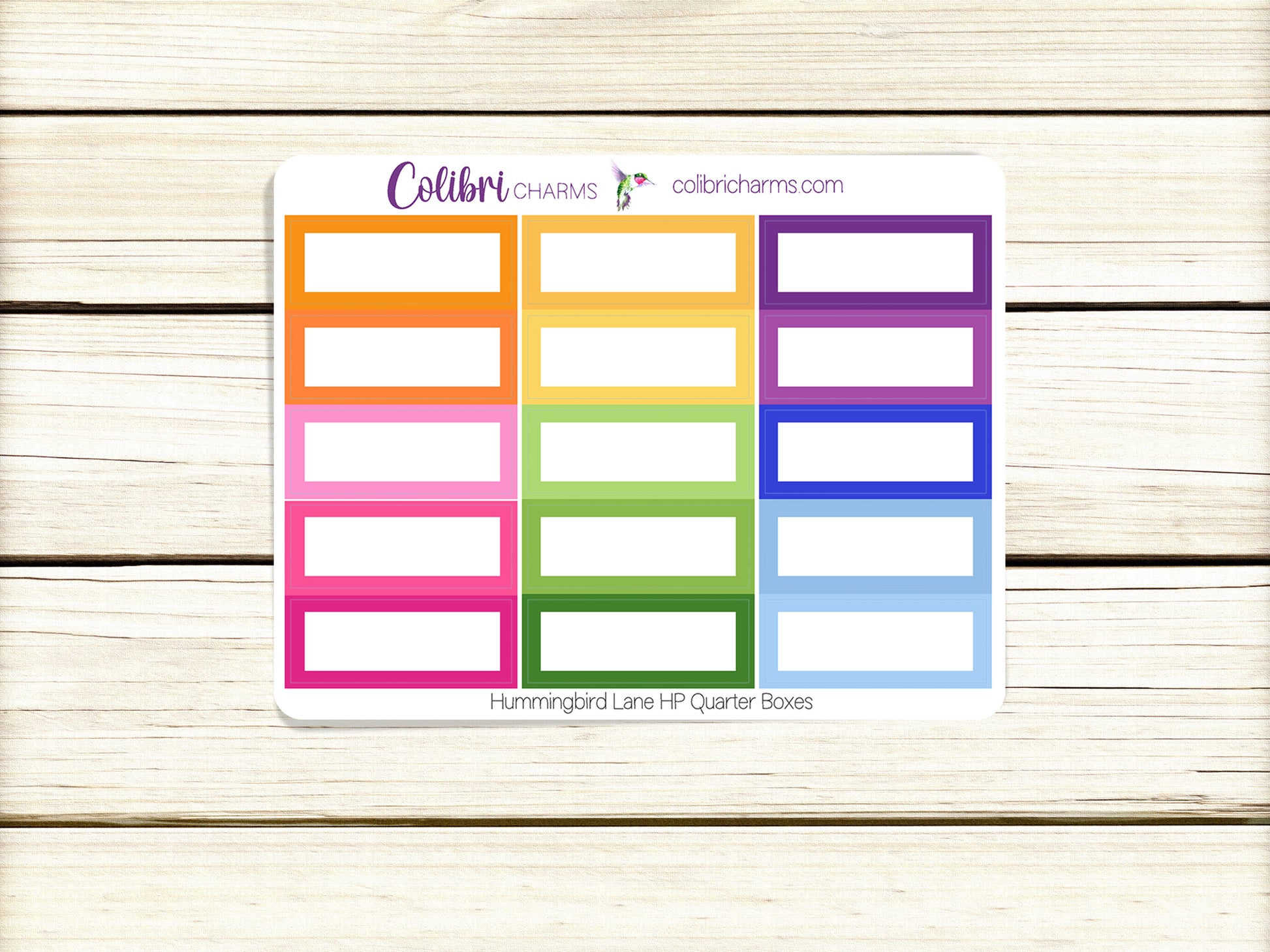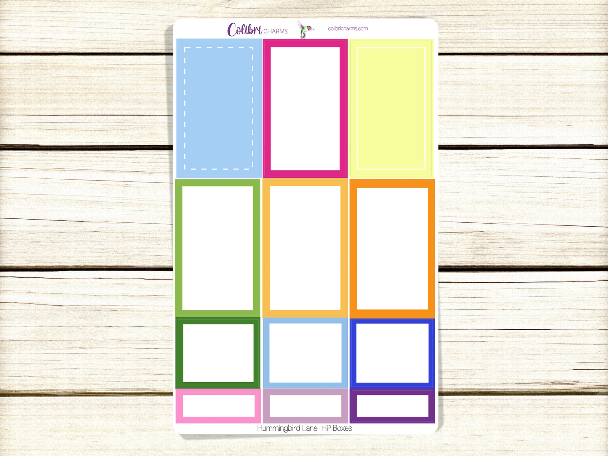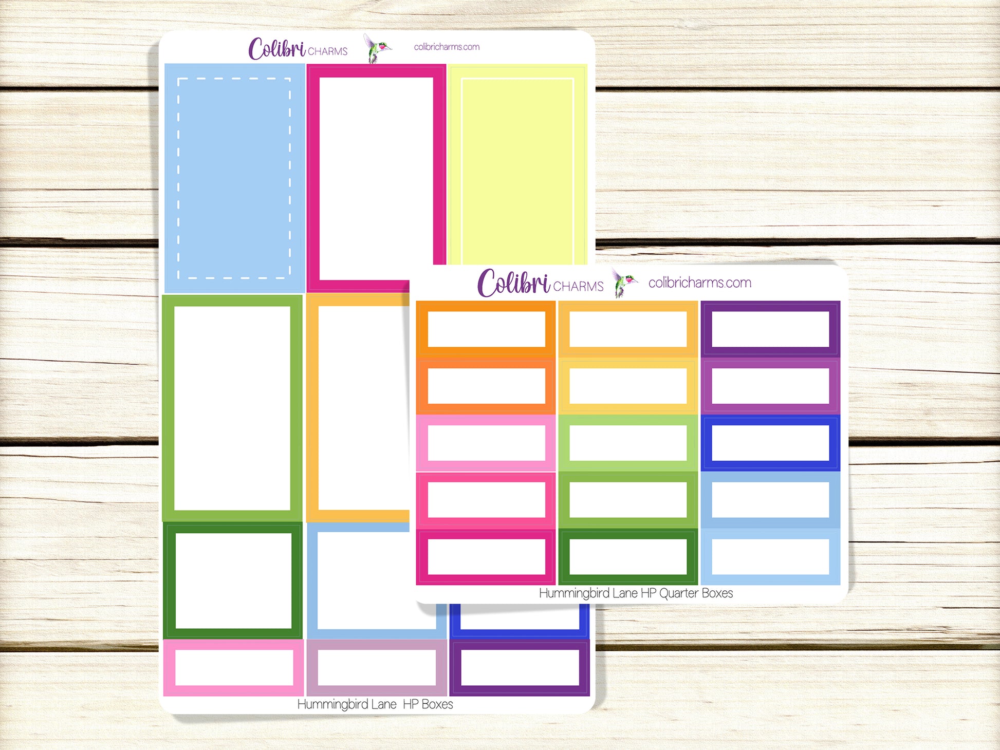 These lovely stickers coordinate with our Hummingbird Lane collection. Get individual sticker sheets of Large, Half and Quarter Boxes, a sheet of Quarter Boxes or a sheet of Square Boxes, or buy them as a set at a discount.
