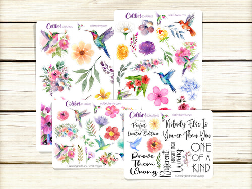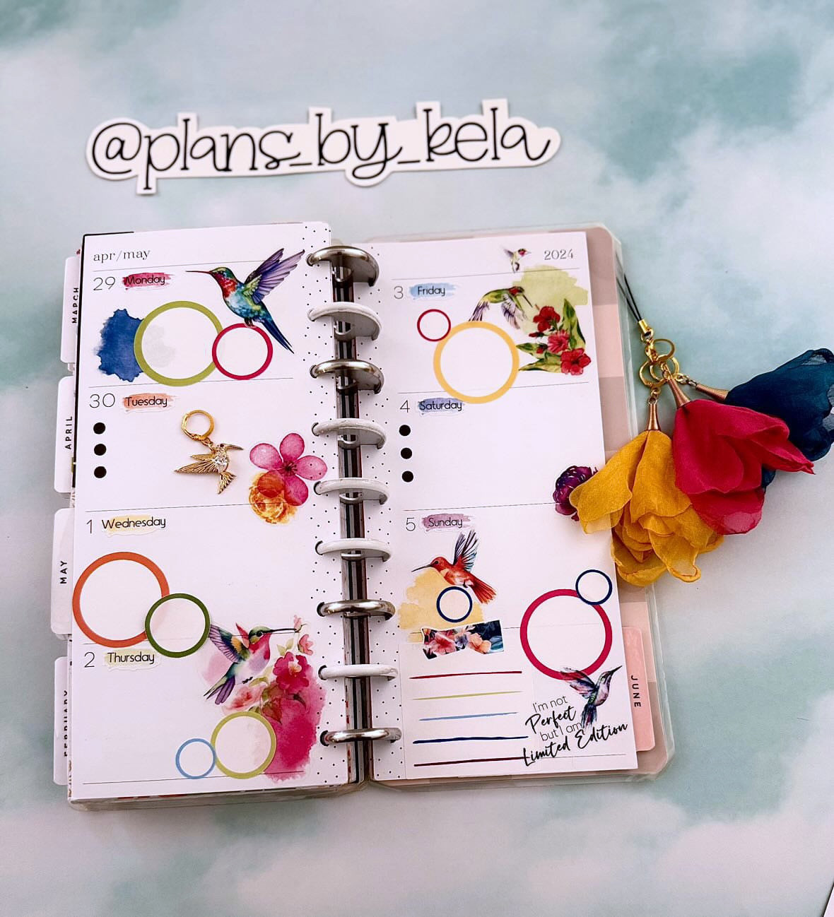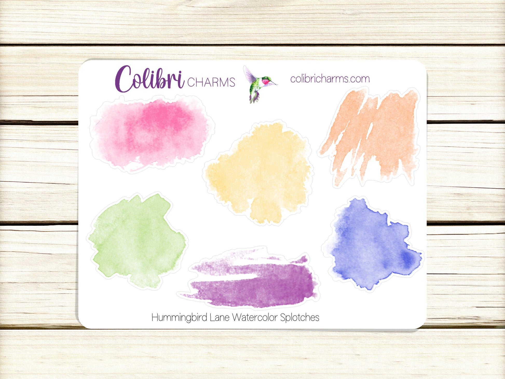Our popular watercolor splotches stickers are perfect for your planner set up. They coordinate with our _Hummingbird Lane collection, full of bright florals and beautiful birds.