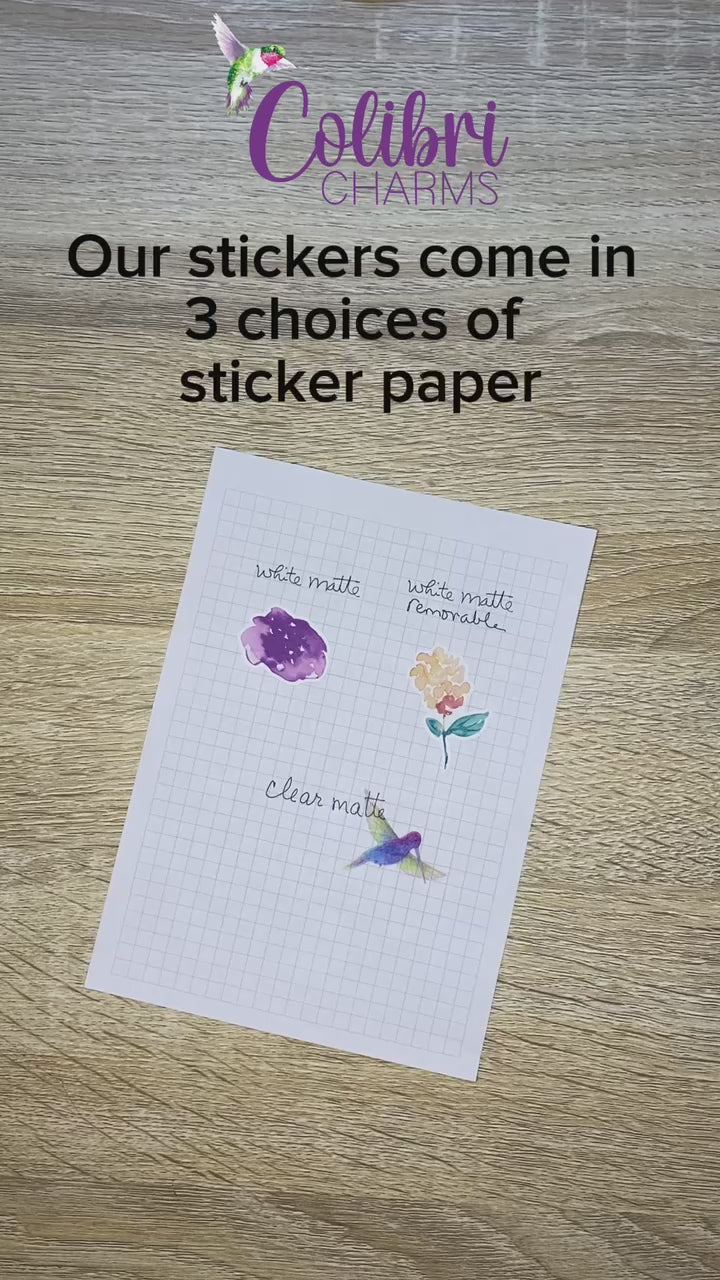 These stickers are laser-printed on high-quality, matte sticker paper and cut with a digital cutting machine with a high degree of accuracy. Available in matte white, removable matte white, or matte clear.