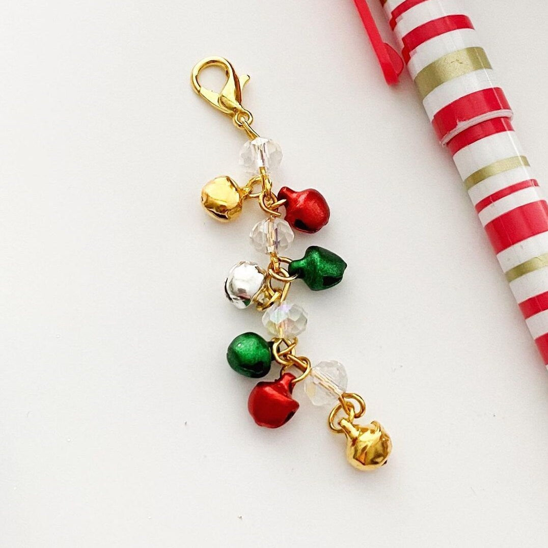 This little chain of bells will add holiday cheer to your planner, pouch, badge reel or bookmark. Available with silver- or gold-tone hardware, on a clasp, or on a jumbo paper clip.
