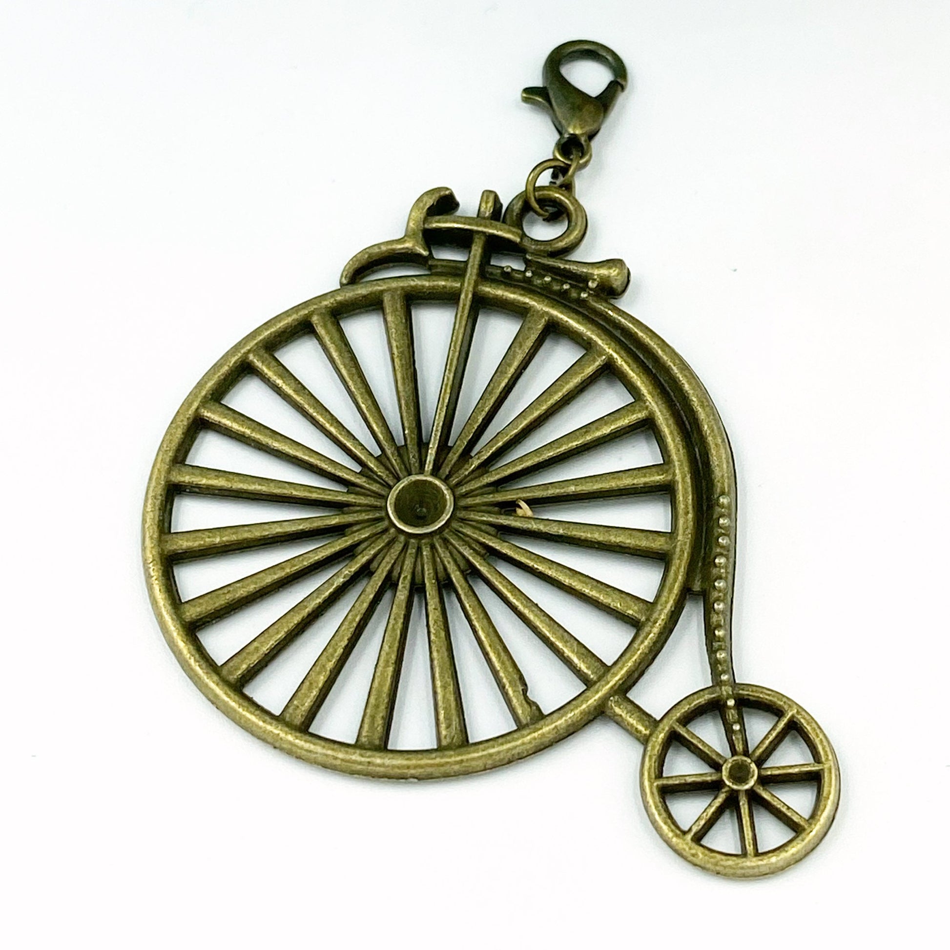 Large antique bicycle charm with antique bronze lobster clasp. Perfect for the elastic of your traveler's notebook, or the rings of your planner with optional extender, when available. (Extender has gold-color lobster clasp.)