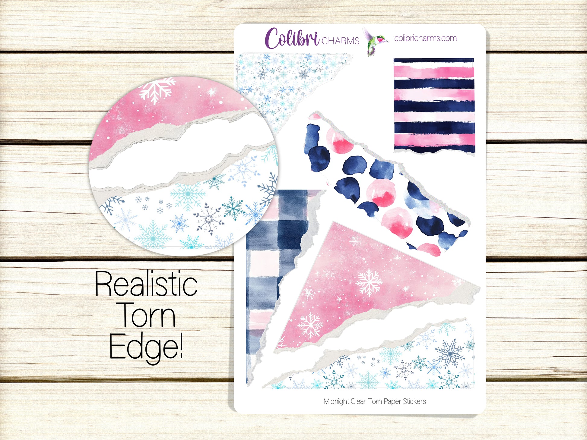 These realistic torn-paper stickers are the perfect complement for our pink and navy Christmas-themed collection, Midnight Clear. They will look great in your planner, bullet journal, or scrapbook.