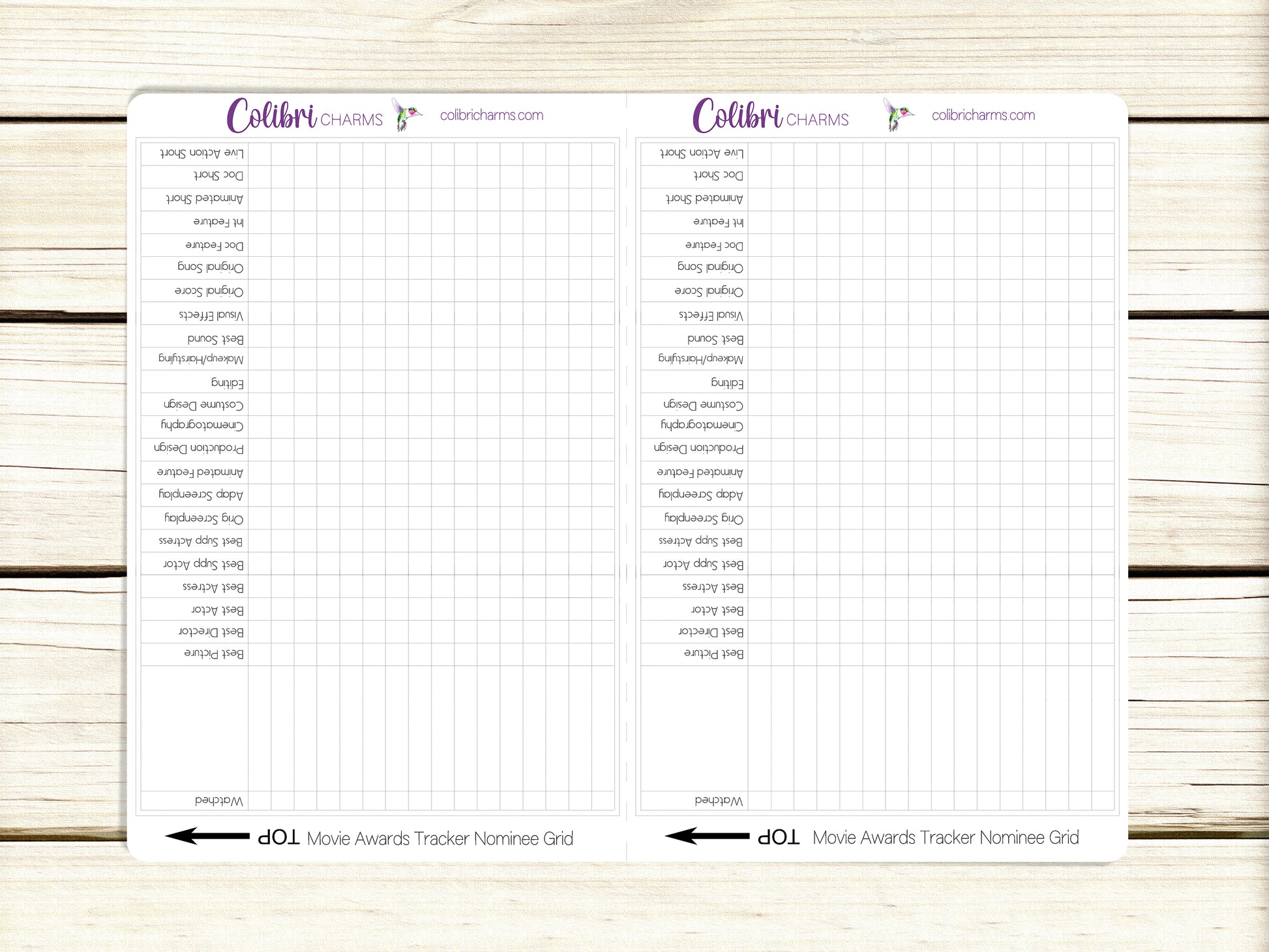 Do you like to record each year's Oscar nominees in your planner? Keep track of the nominees, your picks, and which movies you've seen. Set includes Four tracker sheets, plus decor stickers, circles to mark nominees, and stars to mark your predictions. Includes room for 64 nominees.