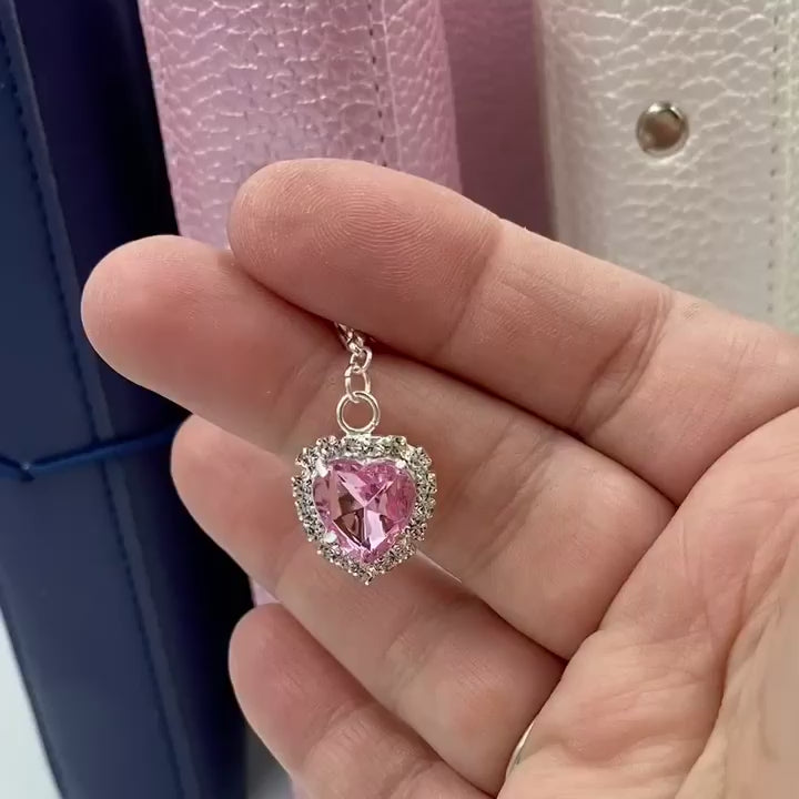 Pink Rhinestone Heart Charm, Valentine Clip, Rhinestone Stitch Marker, Progress Keeper