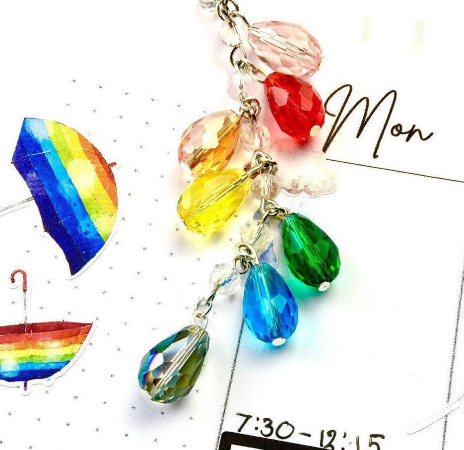 Raindrop Beaded Chain Planner Charm | Sparkly Rainbow Charm | Weather Bead Dangle | Colorful Bead Chain
