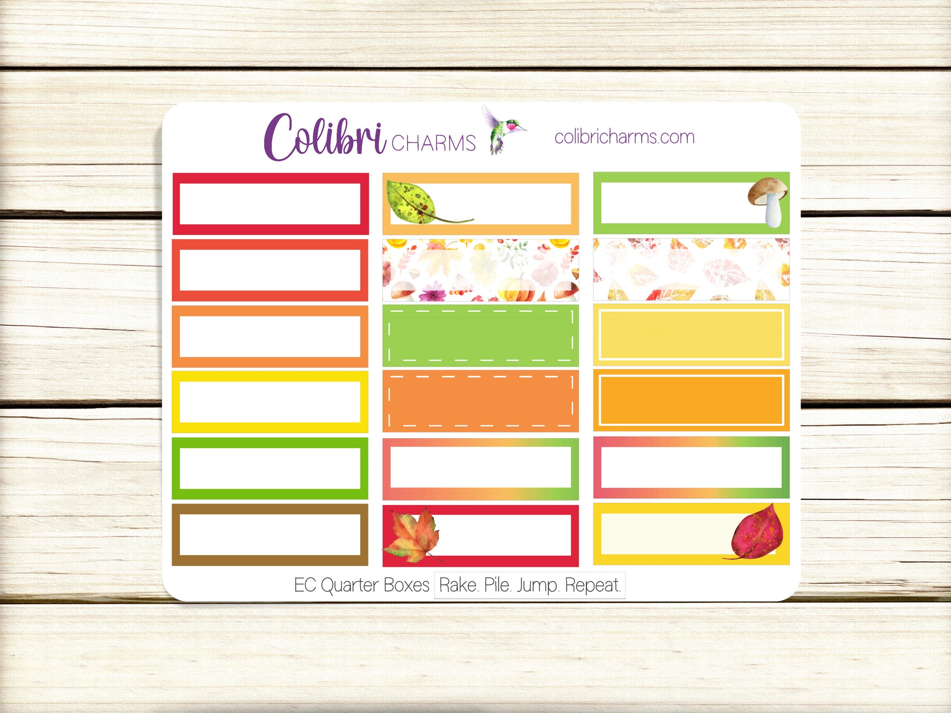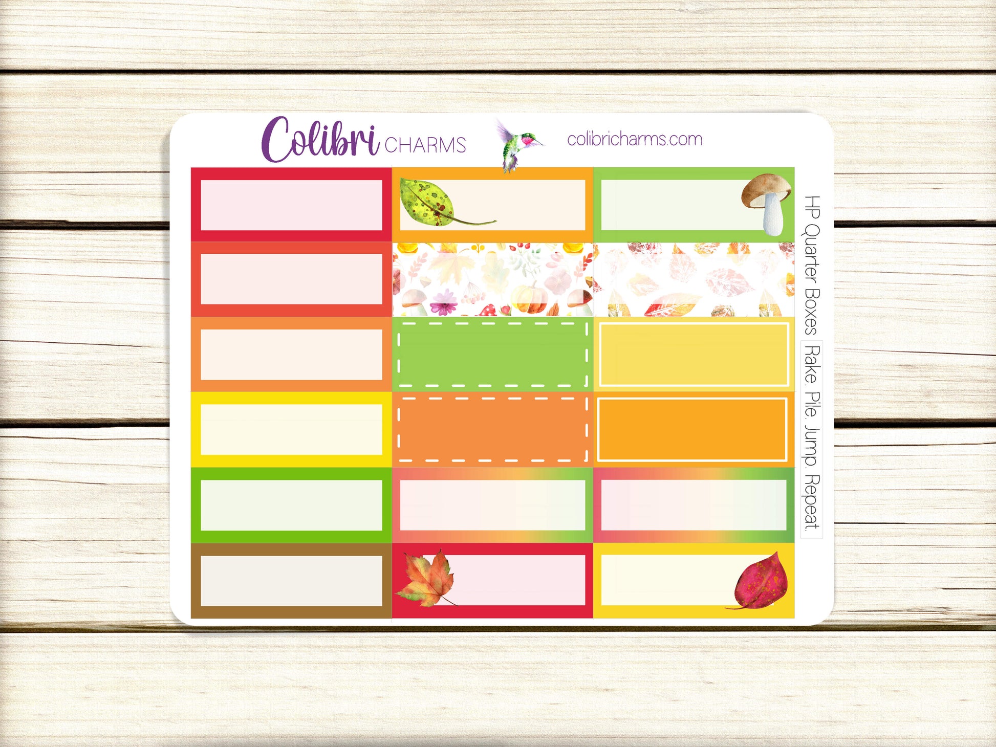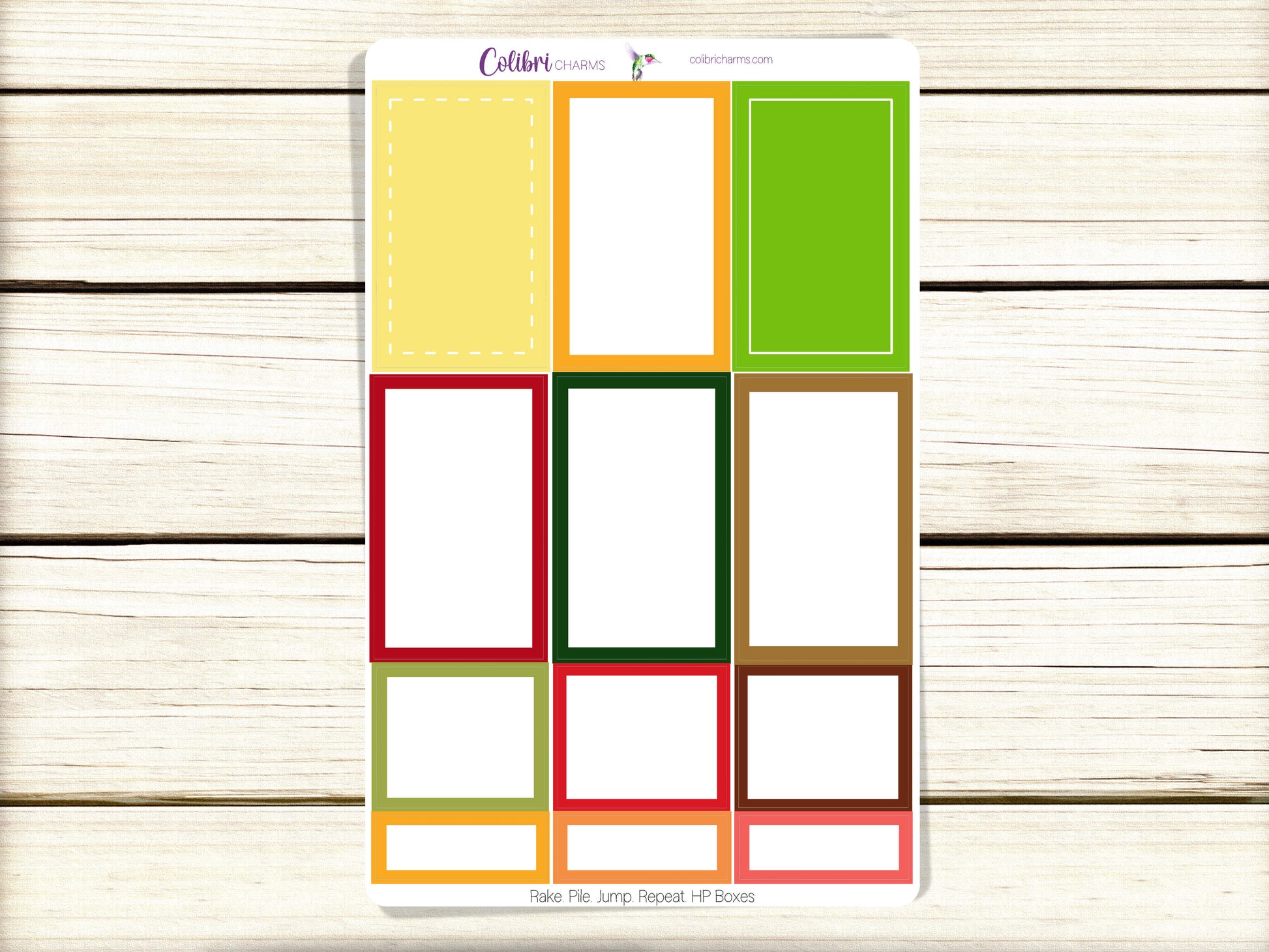These lovely stickers coordinate with our Rake. Pile. Jump. Repeat. collection. Get individual sticker sheets of Large, Half and Quarter Boxes, a sheet of Quarter Boxes or a sheet of Square Boxes, or buy them as a set at a discount.