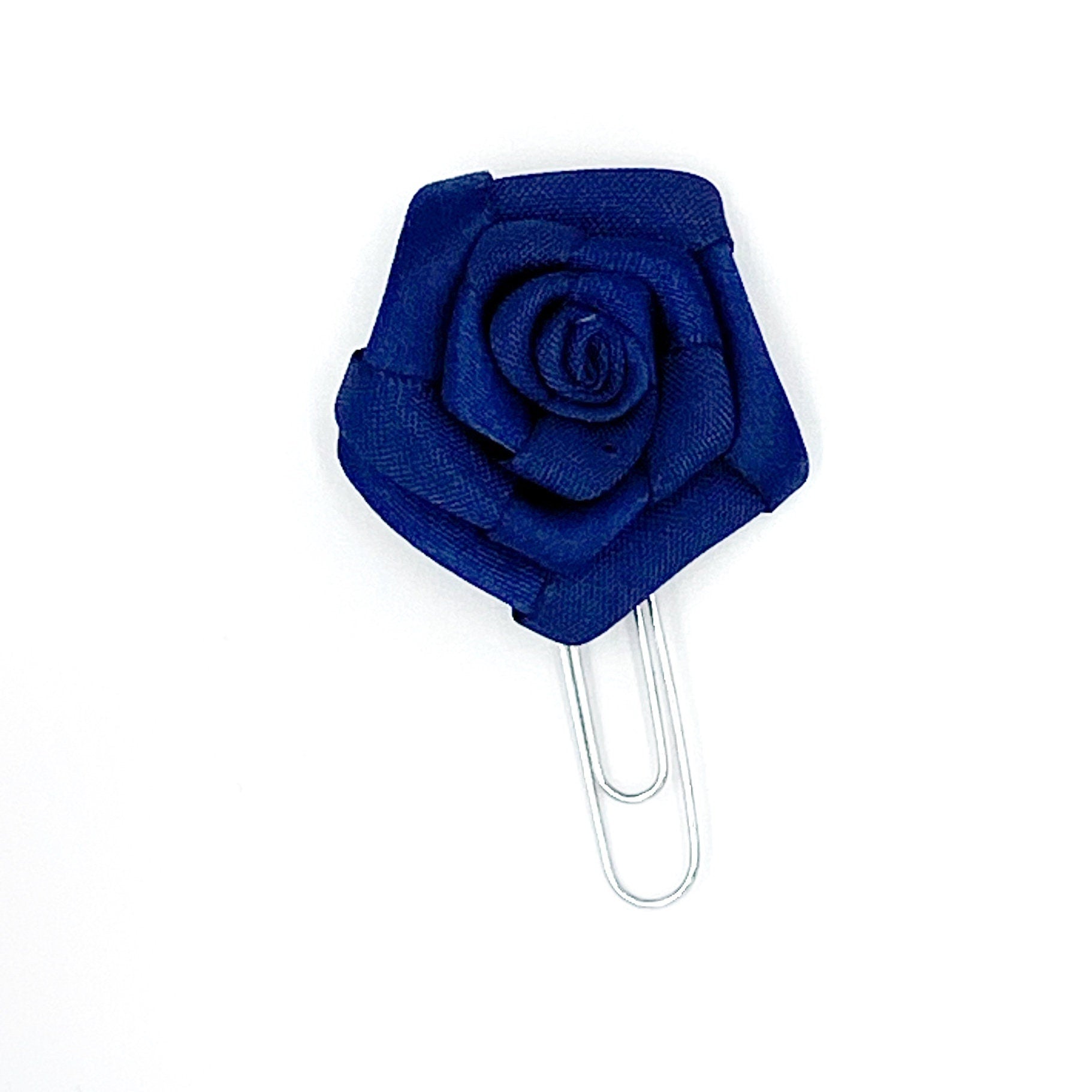 These vibrant flowers will bring joy to your planner set up. Jumbo silver paper clips with rolled navy blue satin flowers.