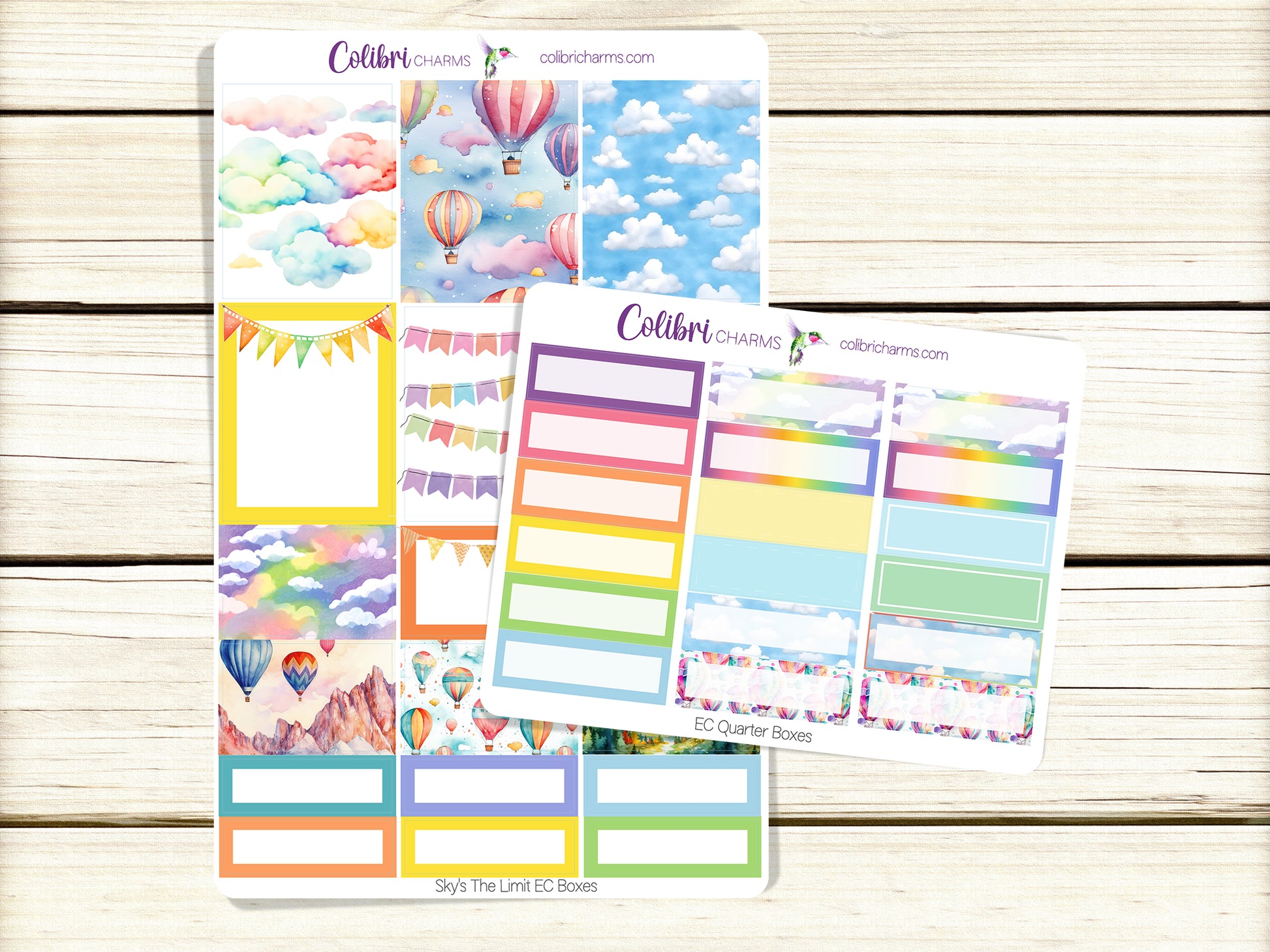 Sky's The Limit Box Planner Stickers | Hot Air Balloon Happy Planner Stickers | Seasonal Planner | Blue Skies Functional Planning