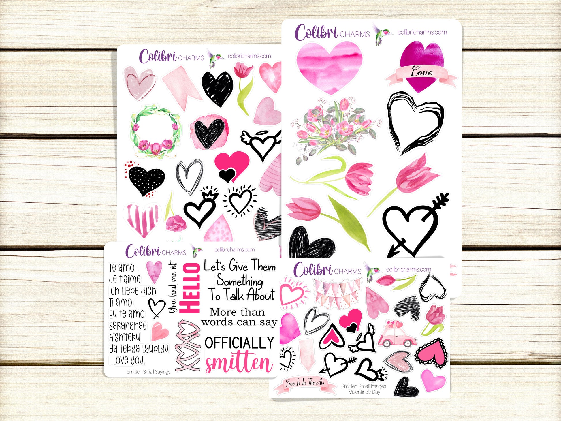 Smitten Planner Stickers, Valentine Deco Stickers, Pink and Black Kit