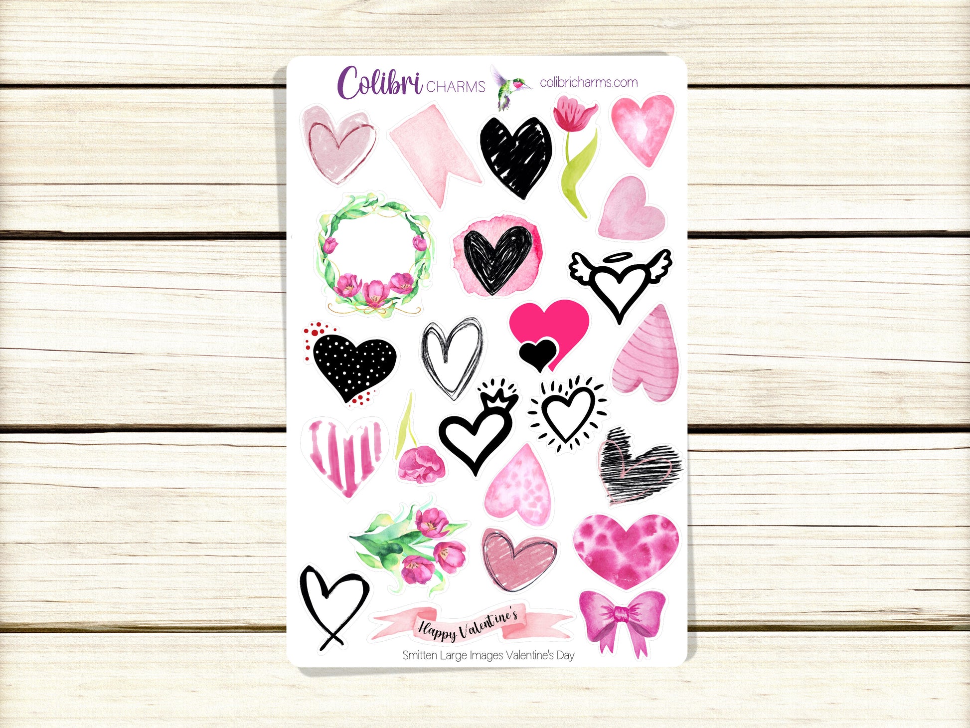 These pink and black Valentine stickers are perfect for your February planner set up. Get individual sticker sheets, or buy them as a set at a discount.