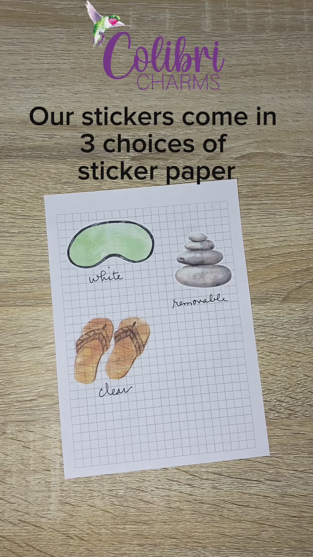 These stickers are laser-printed on high-quality, matte clear (for that washi look) or matte white or removable matte white sticker paper and cut with a digital cutting machine with a high degree of accuracy.