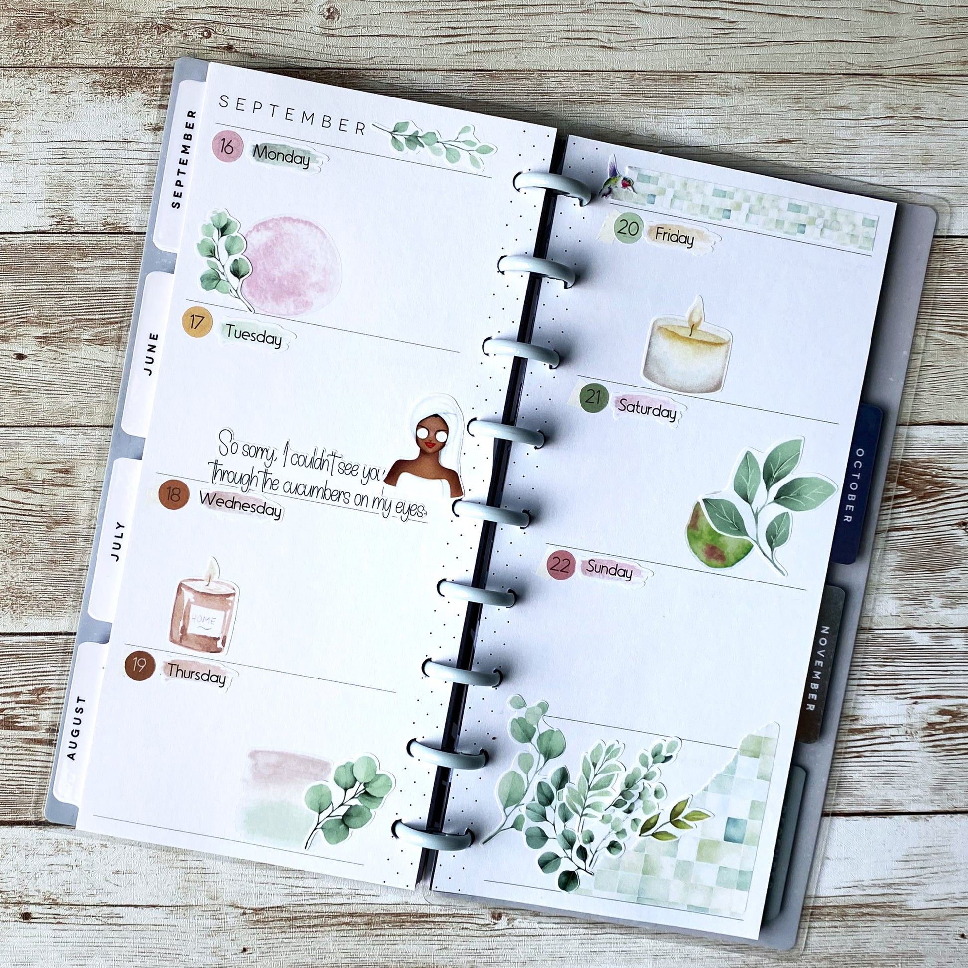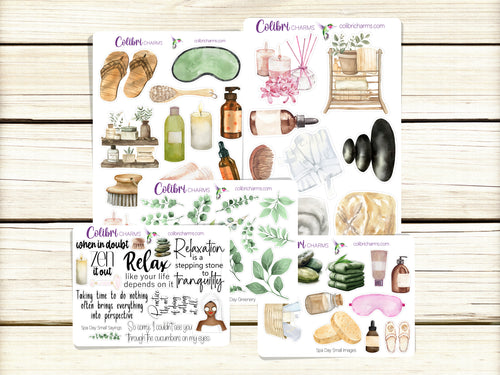 Our popular watercolor splotches stickers are perfect for your planner set up. They coordinate with our Spa Day collection, full of self-care images and messages.