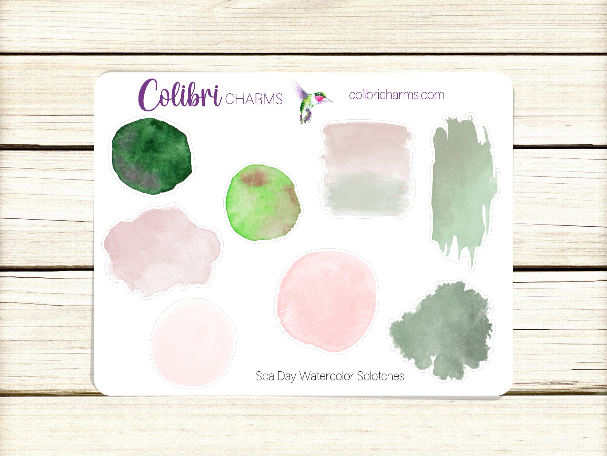 Spa Day Watercolor Splotches Planner Stickers | Restful Palette Paint Swatch Stickers | Pink Green Planner