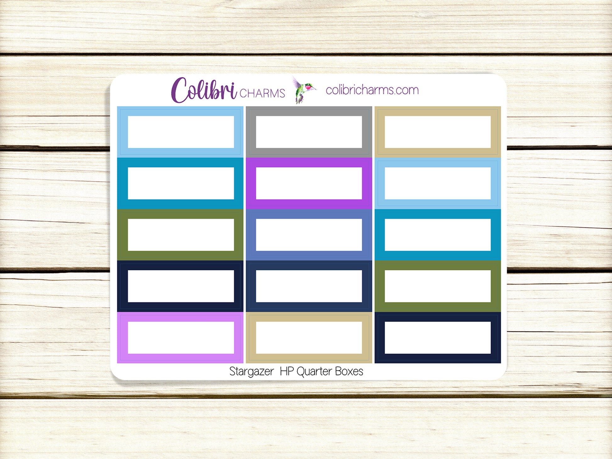 These lovely stickers coordinate with our Stargazer collection. Get individual sticker sheets of Large, Half and Quarter Boxes, a sheet of Quarter Boxes or a sheet of Square Boxes, or buy them as a set at a discount.